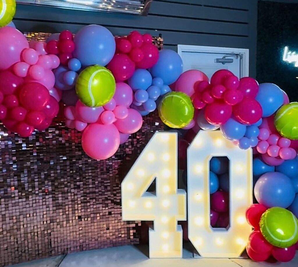 1985 meets tennis fun at this trio’s 40th birthday celebration