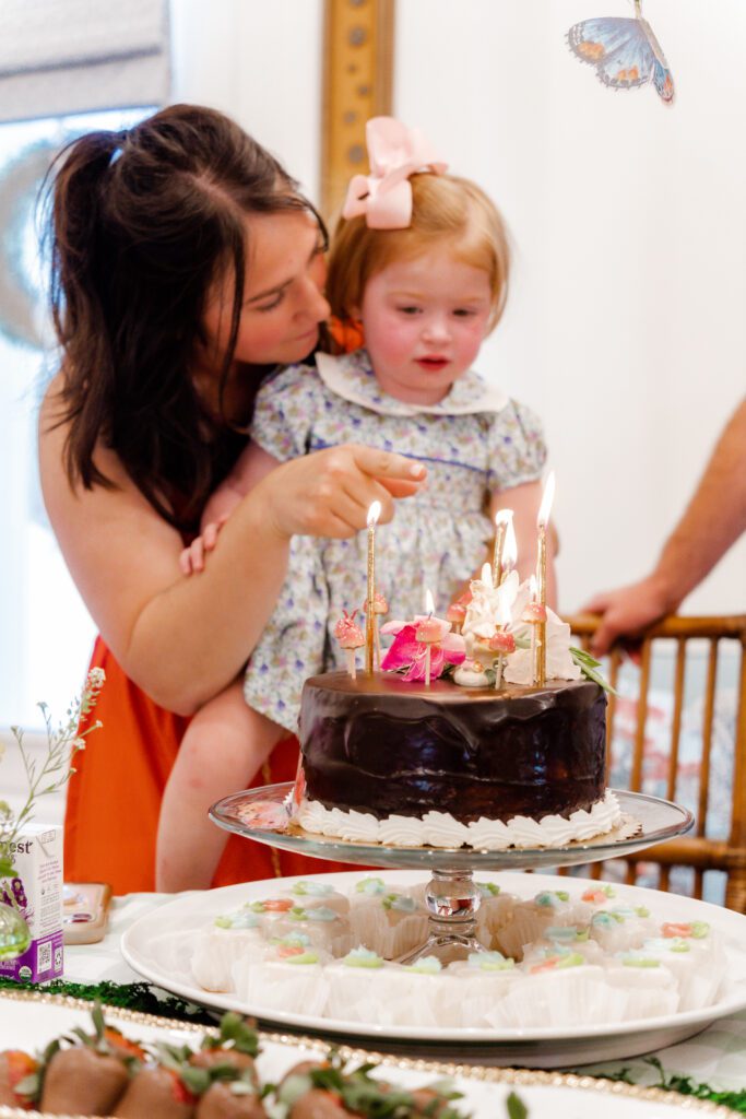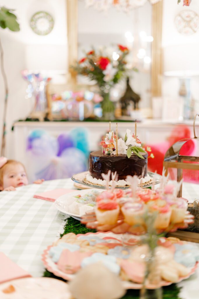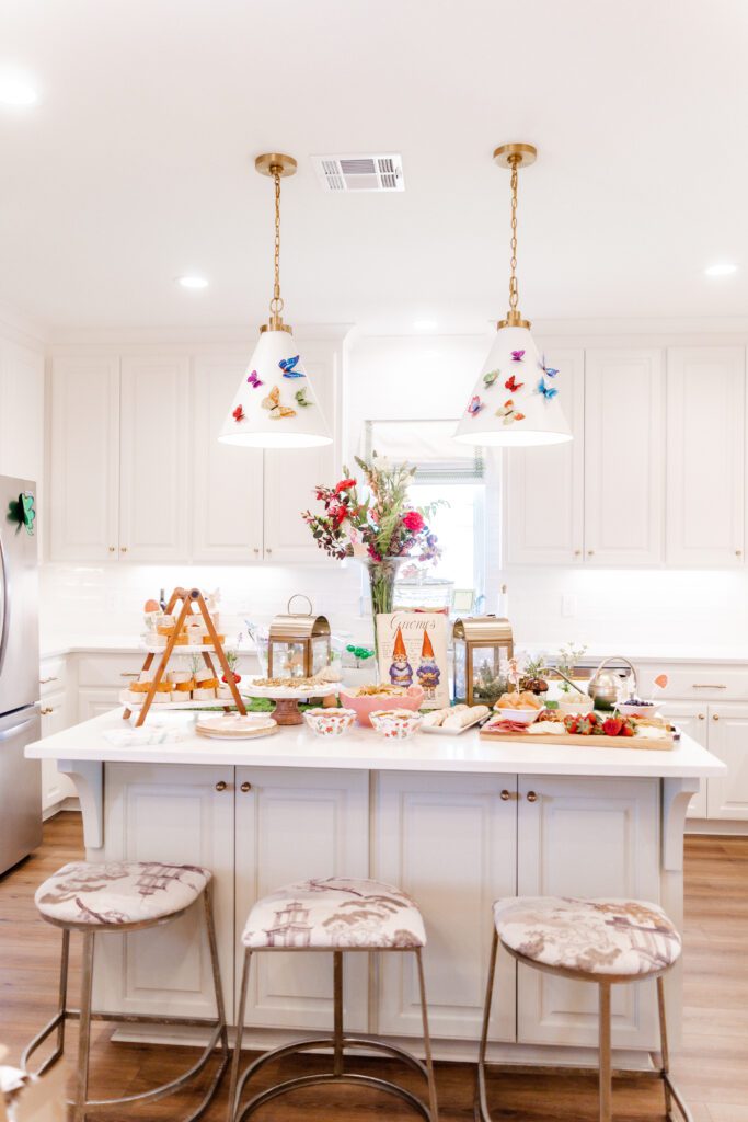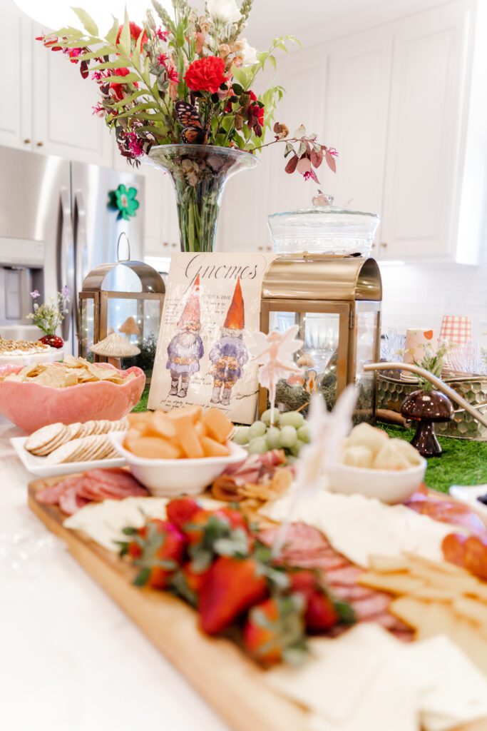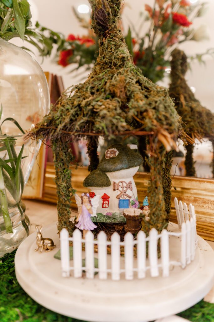 “I love that everyone chips in a little something and it becomes so magical,” she says. “From food made by family, photos taken by Katherine’s talented Aunt KK, the cutest fairy house decorated with help from my sweet littles, to the cutest mushroom bud vases borrowed from a friend, each detail came together because we all did!”