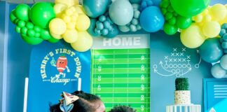 Celebrating Super Bowl weekend, this football-themed first birthday was a touchdown