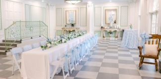 Dainty blues, bows and bunnies made this baby shower a dreamy...