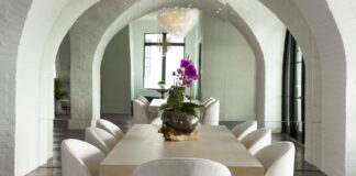 A cathedral-inspired architecture creates a wow-factor in this dining room