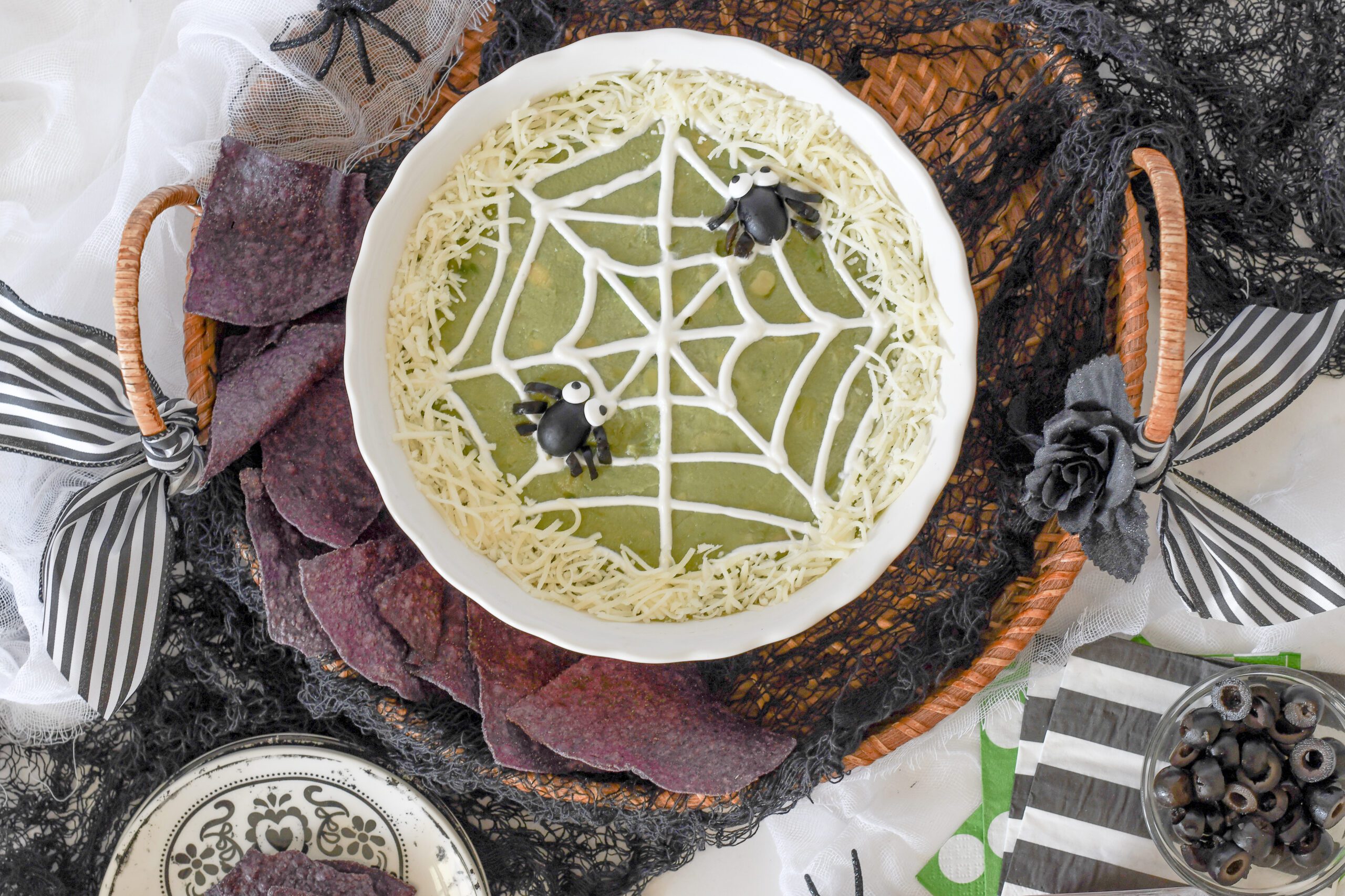 But a Spider Web Taco Dip topped with googly eye black olive spiders? Now that? That I can do. And if you’re thinking to yourself, “I’ve never seen a taco dip without meat with the guacamole as the star topper,” that’s likely because you never showed up to my house when the theme was black, white and, in this case, guacamole green all over.