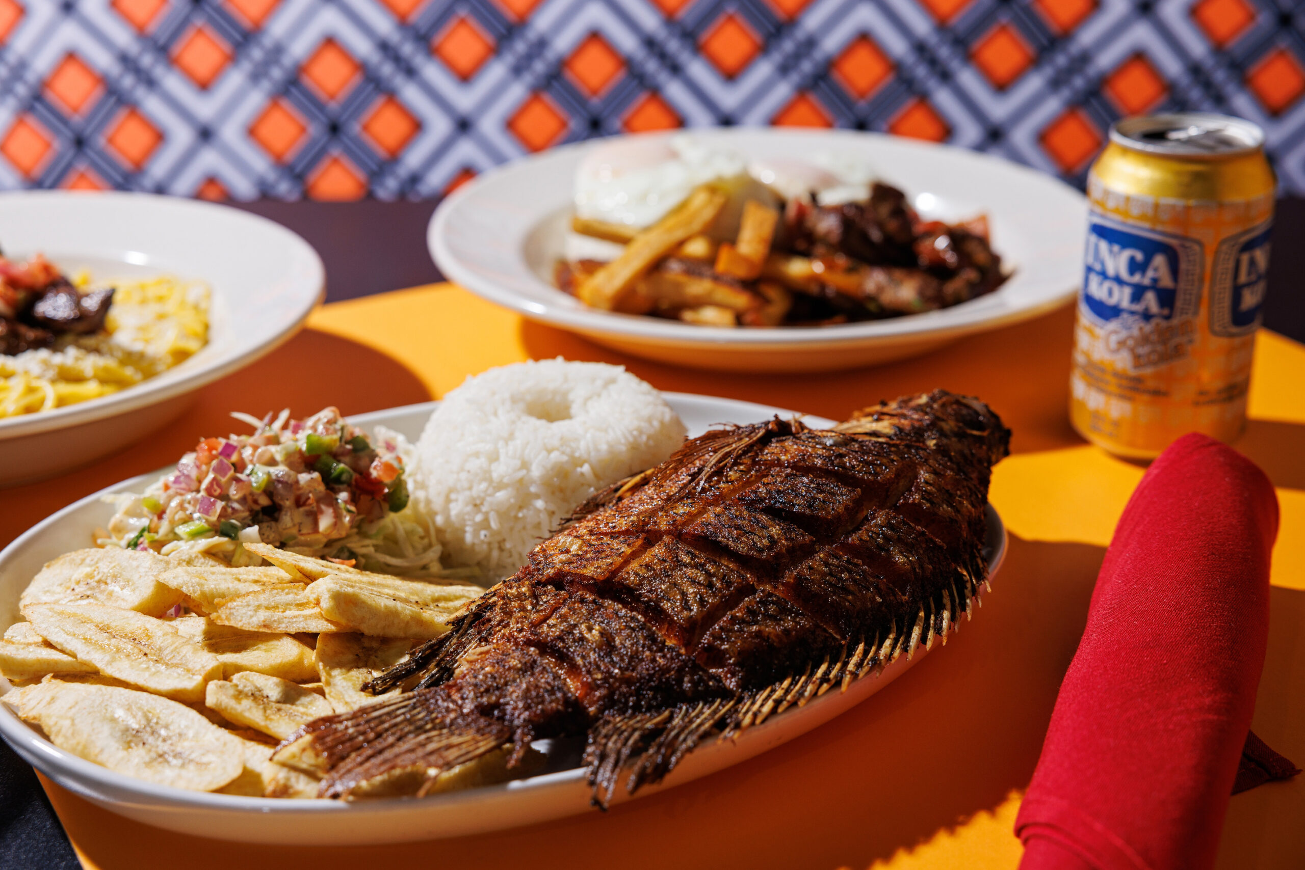 There’s sweet, smoky charcoal chicken—one of the country’s most popular dishes—with whole chickens marinated for two days and cooked in Peruvian rotisserie ovens. Or, sample spaghetti noodles coated in huancaína, a peppery yellow sauce from the Andean region.