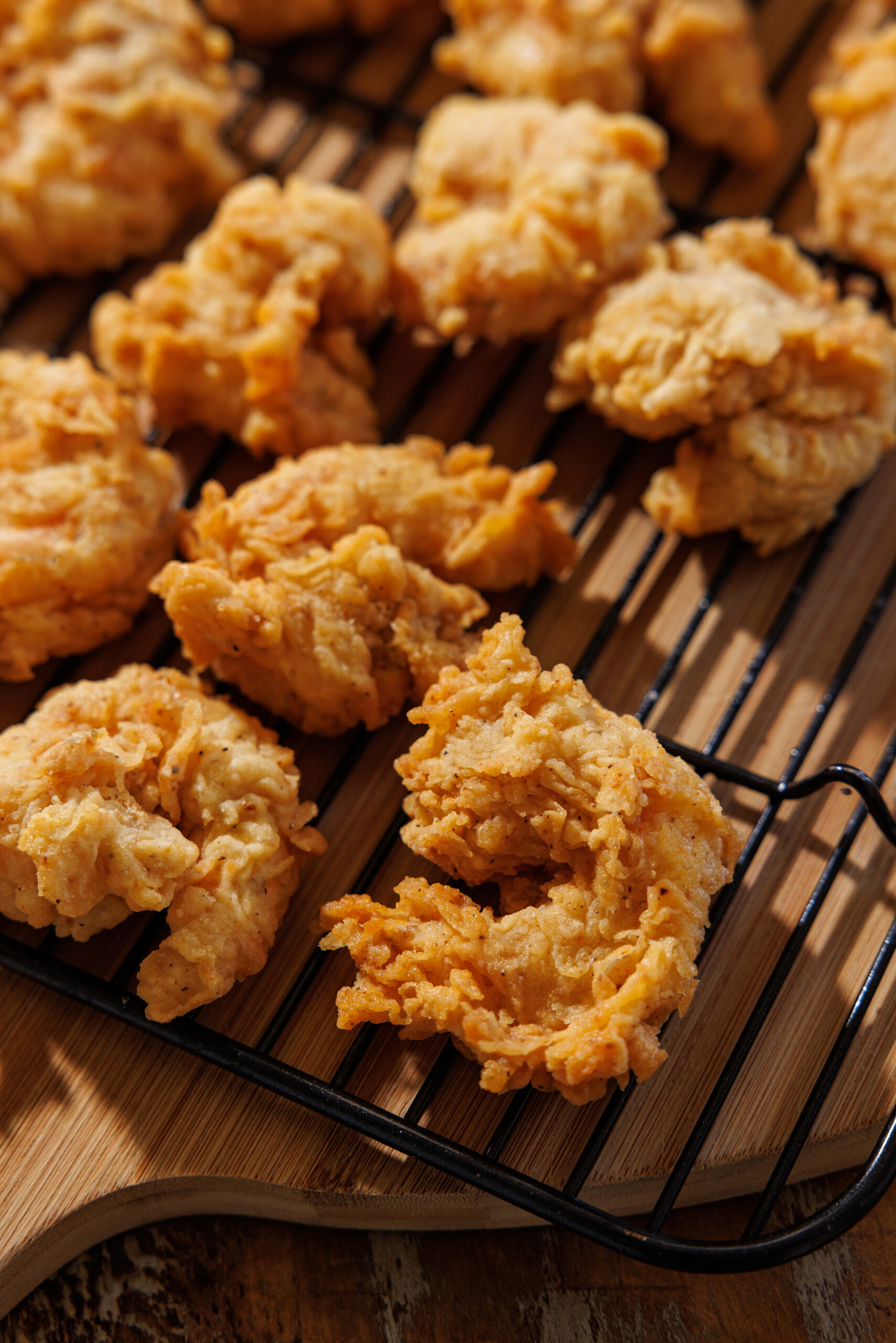 Fry shrimp for 3-4 minutes until golden brown. Place fried shrimp on wire rack to drain.