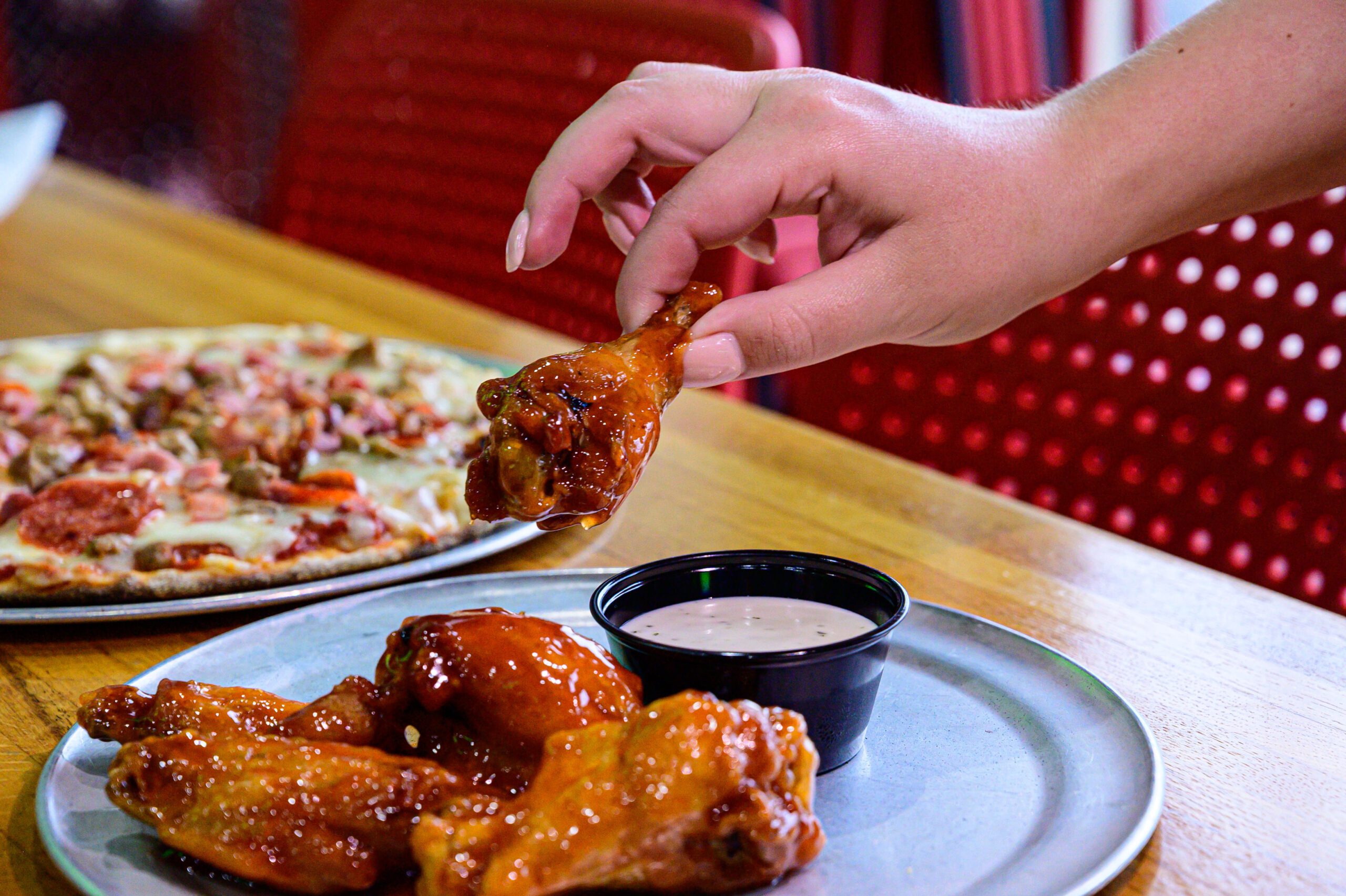 While the menu no longer offers by-the-slice pizza, it still has signature pies, like the Heisman and the Fighting Tiger, along with new wing options. Gone are City Slice’s dry rubs, and in comes a variety of new wet sauces. The wings are soaked in a brown sugar brine and fried without batter. After trying around 100 different new flavors for the menu, the City Slice team landed on staple sauces like buffalo and garlic parmesan. Expect unique flavors, too, like hot honey, mango habanero and spicy peach.