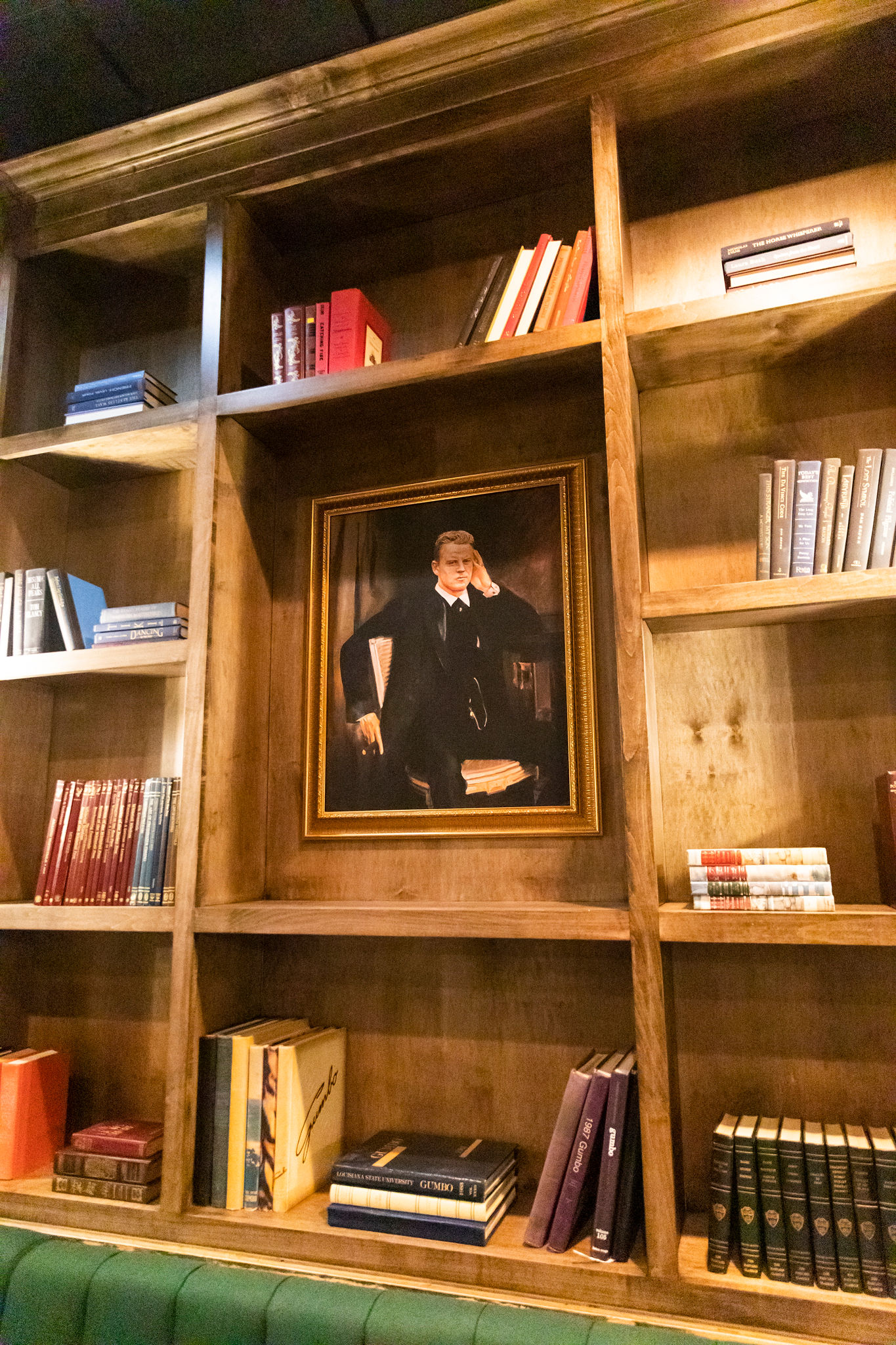 The Tigre Room highlights LSU sports legends by incorporating digitally created heroic portraits of famous figures including Louisiana legend Joe Burrow, LSU basketball icon Shaquille O’Neal and Baton Rouge’s sweetheart D-D Breaux.
