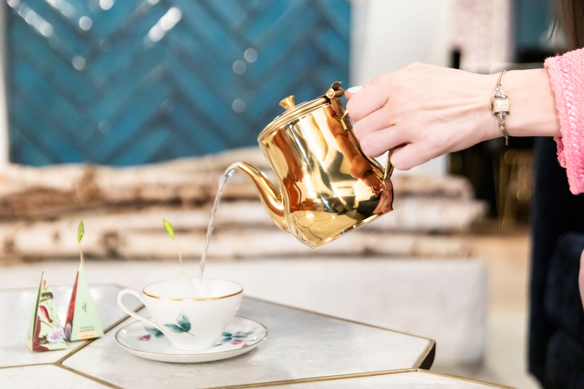 Expect to see teas from high-end tea purveyor, Tea Forté, whose dainty pyramid infusers are topped with a diminutive gilt leaf. Sip from a china cup and munch on classic tea sandwiches, like cucumber and ‘cress, along with gluten-free vegan biscuits and sweets. Crifasi is especially proud of her scone recipes, made with almond flour, and served with boutique jams from the Canadian company, The Preservatory.