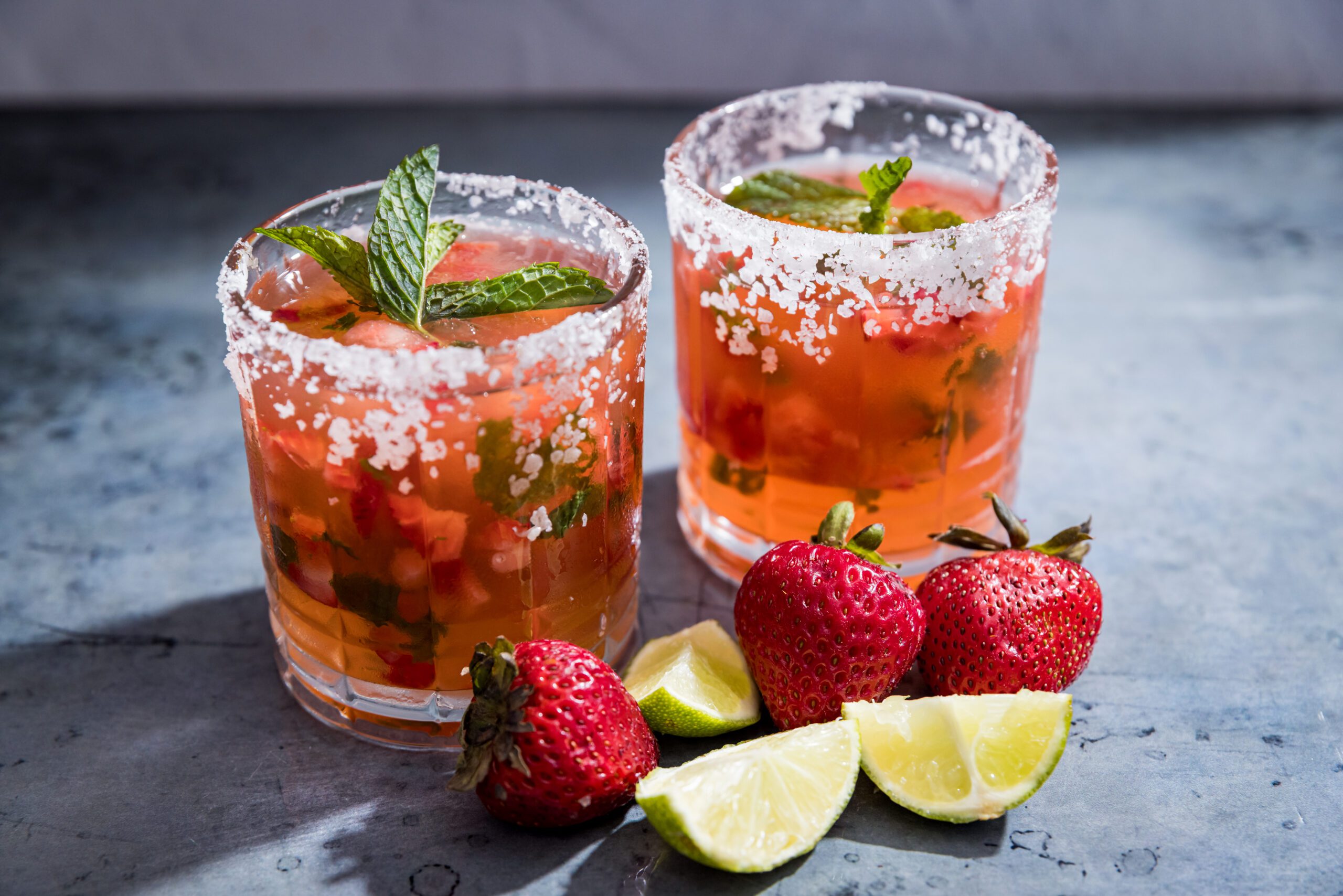 Tip: Use fewer diced strawberries and mint leaves for a better freeze. Use more if you plan to enjoy as a slushy.
