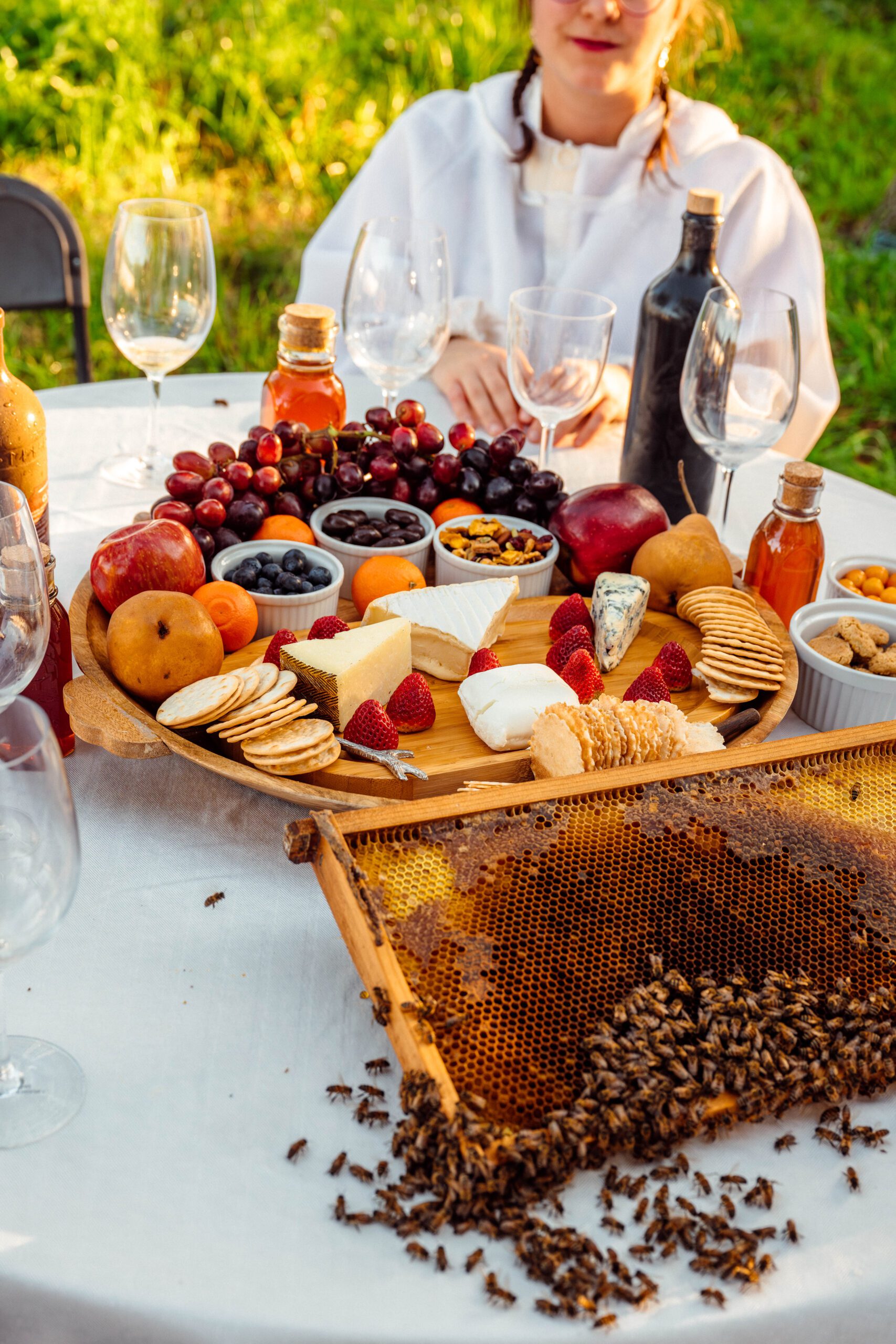 A pollinator-powered charcuterie board puts on display the impact of honeybees