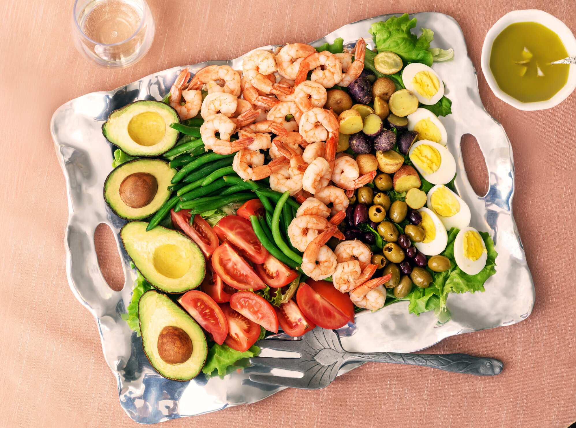 I put a bit of a Louisiana spin on my version by substituting shrimp in place of the traditional anchovies. I also boil the shrimp with new potatoes and fresh green beans in a Louisiana crab and shrimp boil to give everything a little extra kick. And I serve my version of this salad with a classic French-style vinaigrette that has just the right balance of acidity to help brighten the fresh flavors.