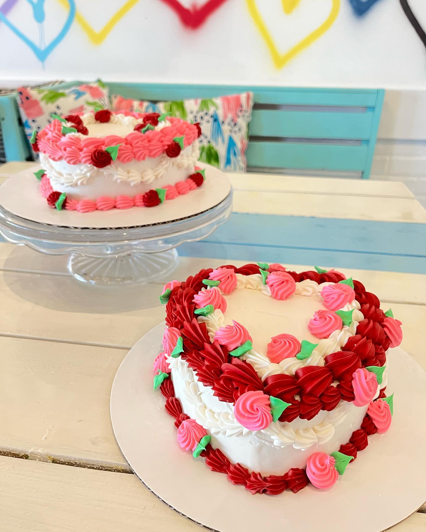But the most modern way that Schmidt brings Victorian piping into her bakery is through her heart-shaped cakes. Rather than a traditional round, the hearts are some of Schmidt’s most popular items, and the ones that are most often adorned with rows and rows of intricate piping. “A lot of people get a heart-shaped cake with all this extravagant piping on it and it makes it look really elegant, but still young and fresh,” she explains.