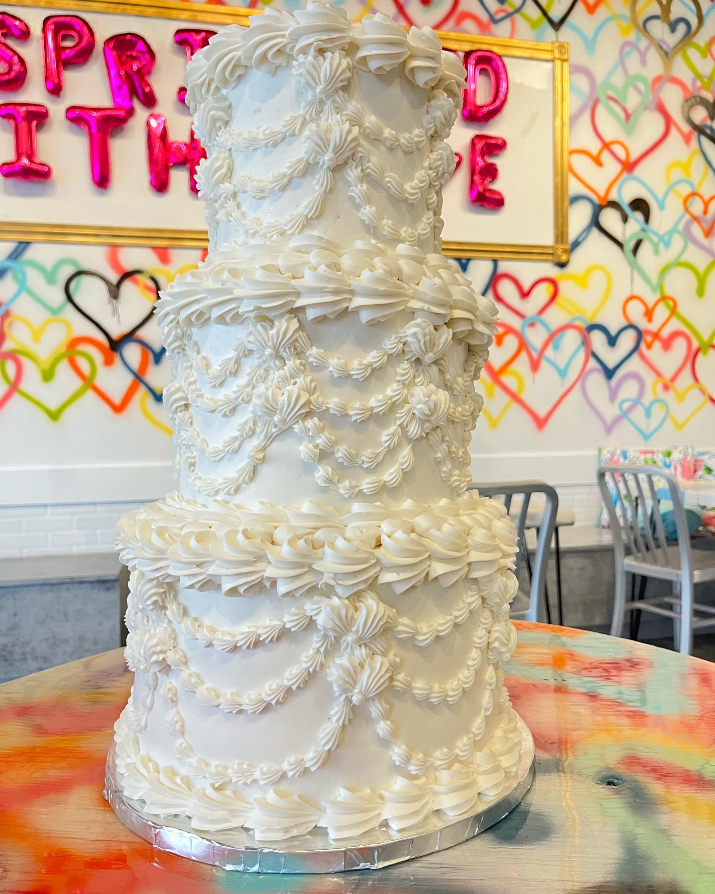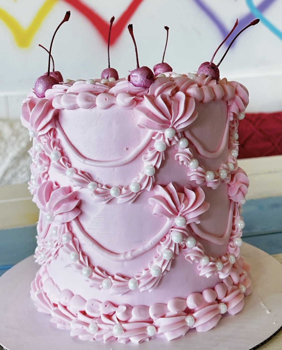 “I think people are just really trying to elevate their parties,” she explains. “I think this style of cake is the perfect way to do so because all the extra piping makes it feel like so much more.”