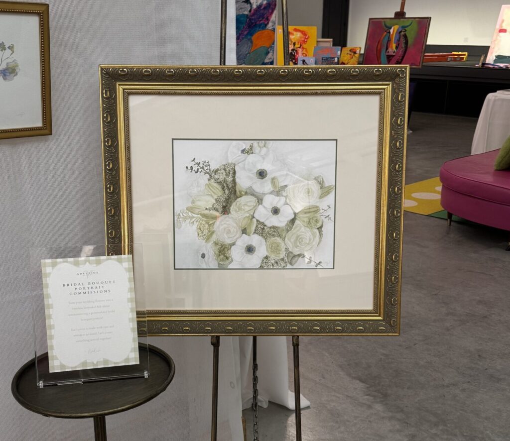Along with the commissioned works through TRENDS by Design, Pitre is also offering a new service: bridal flower portraits. “These are custom paintings that preserve a couple’s wedding bouquet as a piece of art they can treasure forever,” she says. “I love capturing the colors, textures and personality of each arrangement, knowing it represents such a meaningful moment in someone’s life.”