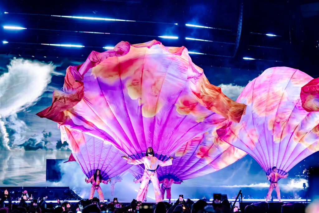 Taylor took the stage promptly at 8 p.m., a fact I do not take lightly. To me, nothing says “I care” like being on time. My eyes welled with tears as the breathtaking, larger-than-life displays worn by her dance team erupted one by one on the stage for her opening performance, a mash-up of “Miss Americana & The Heartbreak Prince” and “Cruel Summer.”
