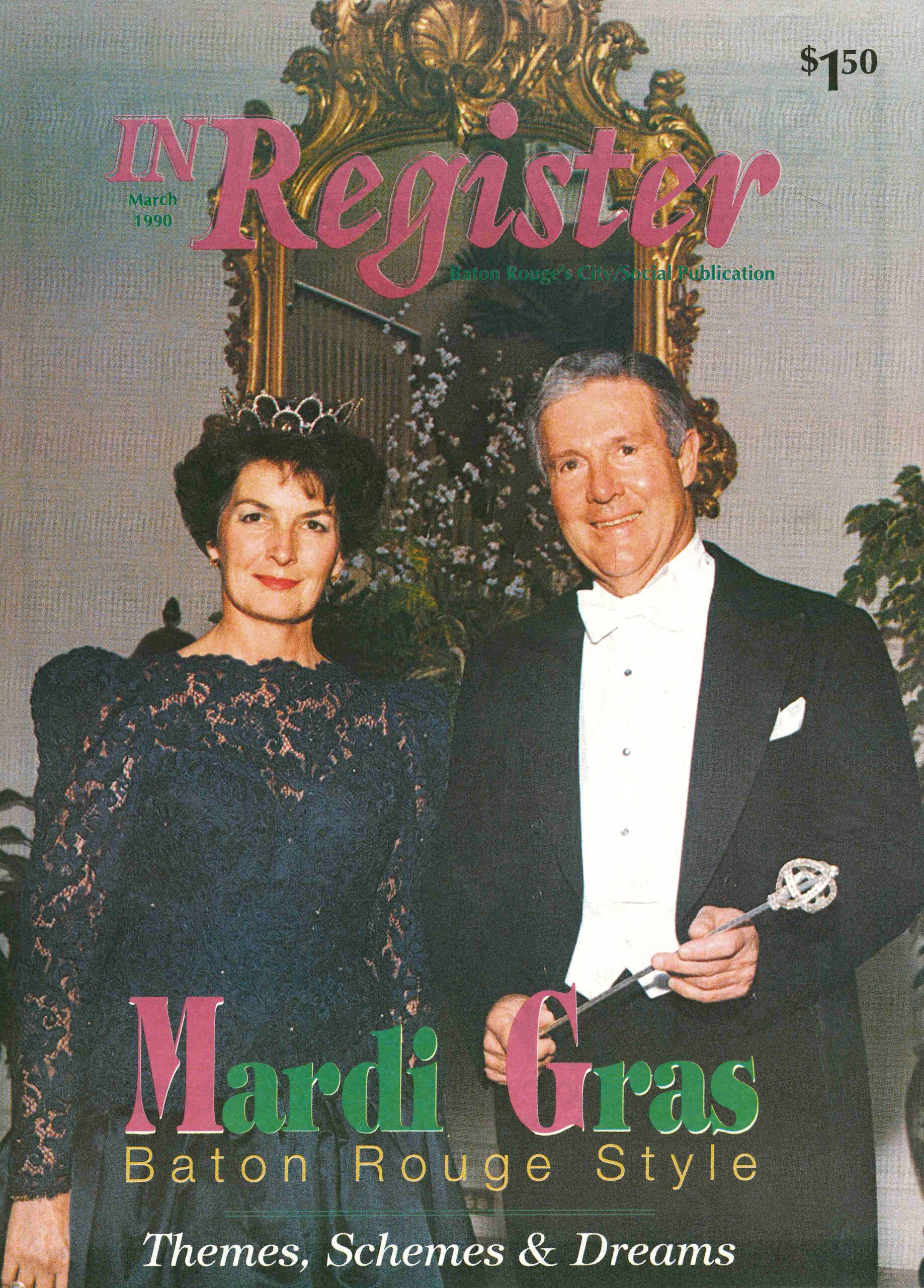 The March 1990 issue of inRegister reflects on both traditions, some of which were brand-new. At the time, the Wearin’ of the Green Parade was still in its infancy, celebrating just its fourth year at the time of the magazine’s publication. Younger still was Karnival Krewe de Louisiane, having formed just three years prior in 1987. The 1990 ball, reigned over by Donna Saurage and Kevin Reilly Sr., who are pictured on the cover, raised some $50,000 for Mary Bird Perkins Cancer Center. Meanwhile, the city’s oldest krewe, Tucumcari, hosted its 43rd ball, complete with extravagant costumes and plenty of Carnival fun.