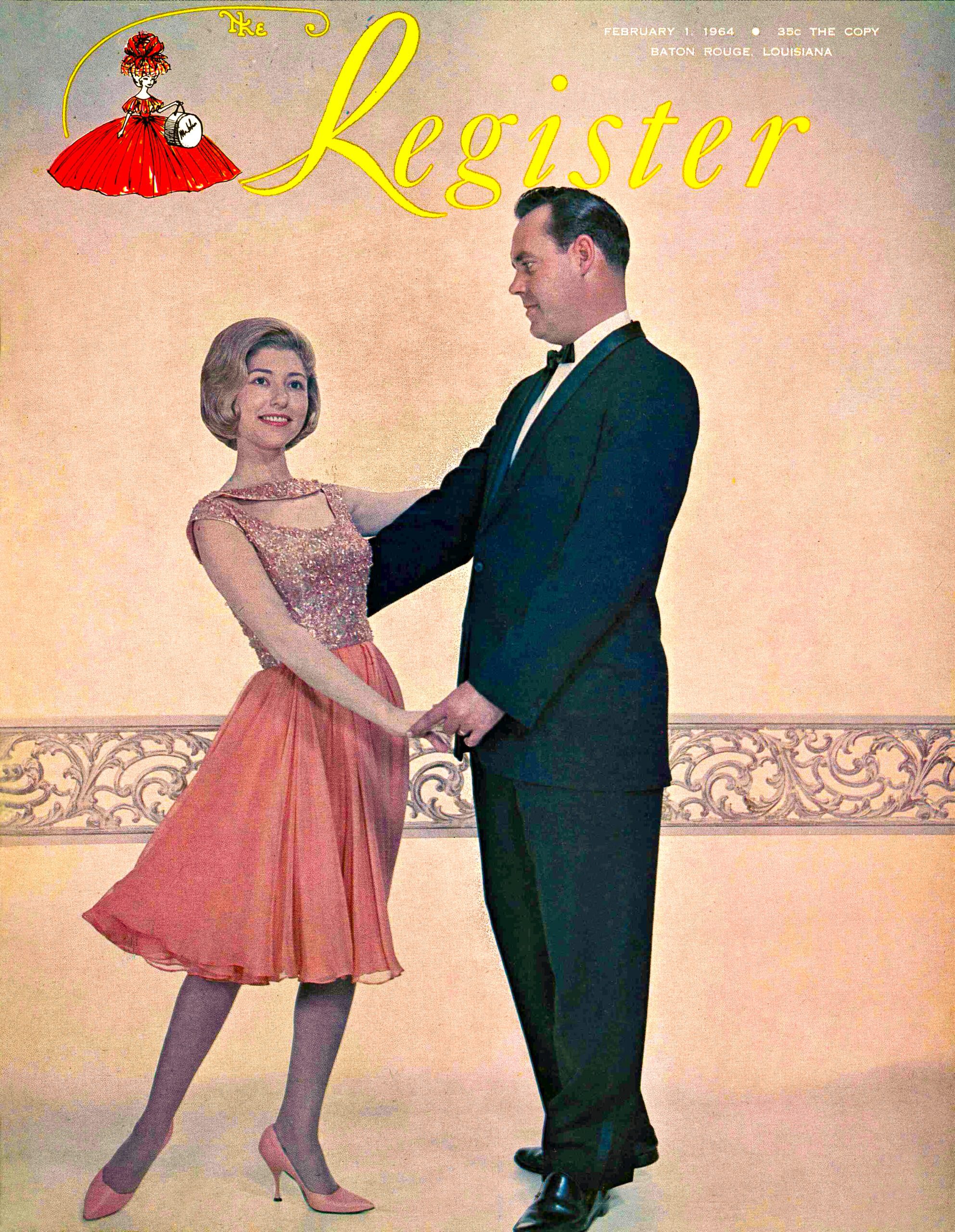 Showcasing this uniquely busy season, when it seems the rest of the country is slowing down due to snowy conditions, Arthur Murray School of Dance of Baton Rouge owners Mr. and Mrs. Charles Miller posed while dancing on a terrace in the moonlight for the cover of the February 1, 1964, issue of The Register. The accompanying article highlights both the bustle of the mid-winter season and Baton Rouge business owners’ long-held commitment to supporting philanthropic efforts.