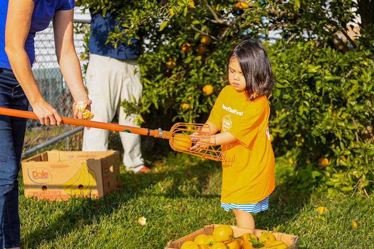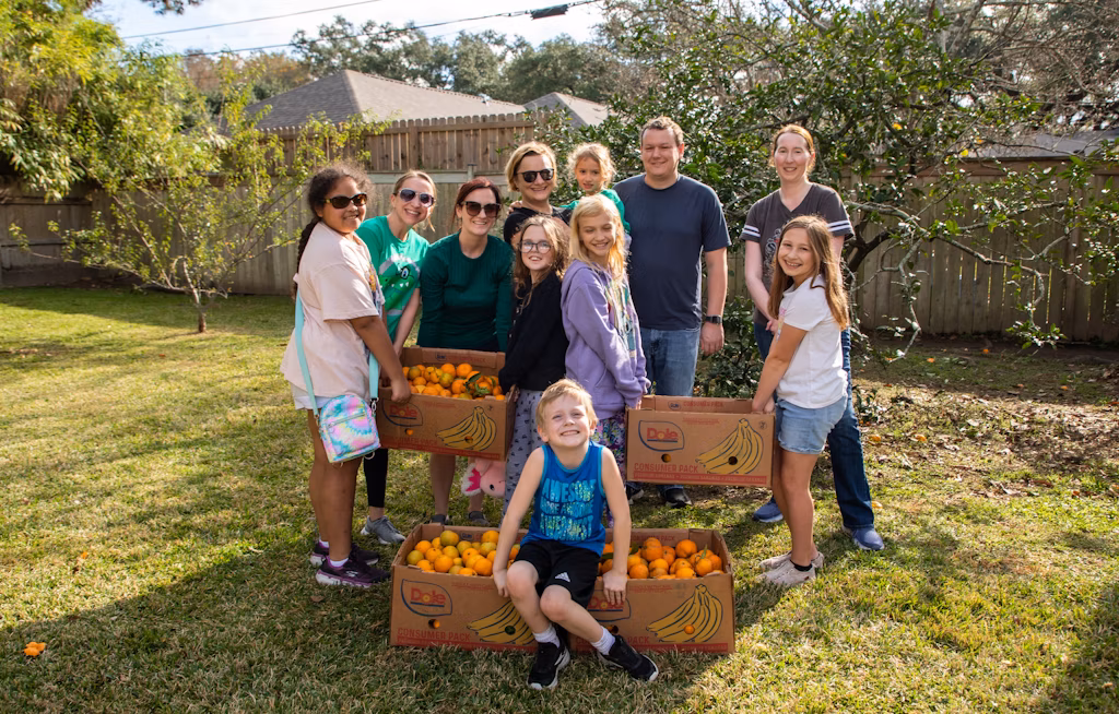 Volunteers carefully gather fresh citrus to donate to the Greater Baton Rouge Food Bank during the day-long event. Those with plentiful trees in their yard can reach out to BRG to volunteer their trees for harvest. BRG trains and equips its volunteers to ensure that trees will not be damaged during the collection process.