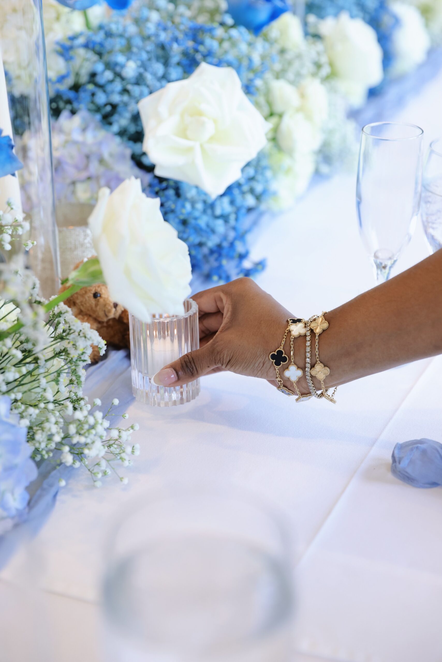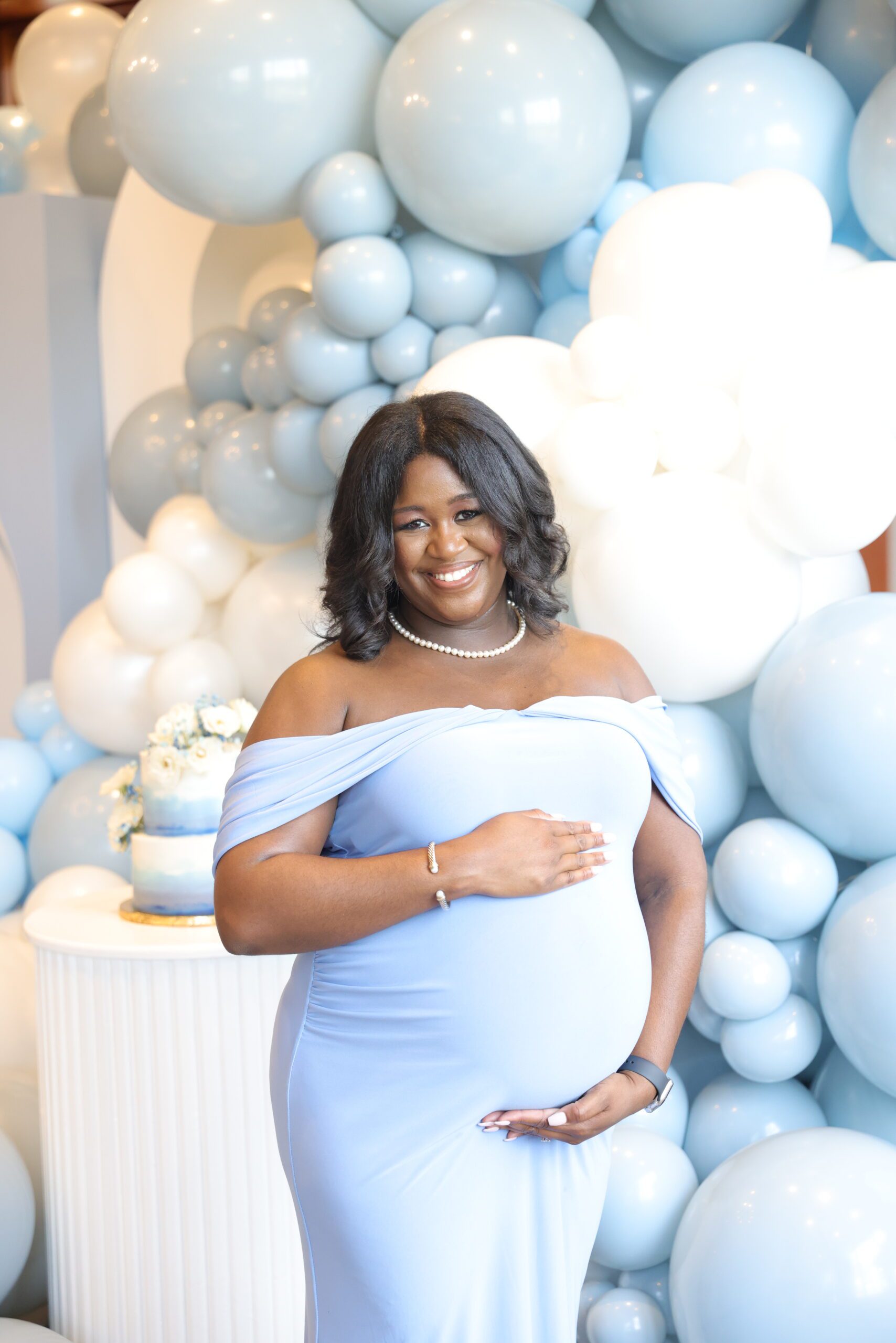 When planning her baby shower, Eboni Buchanan knew she wanted something sophisticated. Enlisting the help of party planner Victoria Roberts of VAR Events, Buchanan’s dusty blue brunch incorporated small baby boy details without going overboard.
