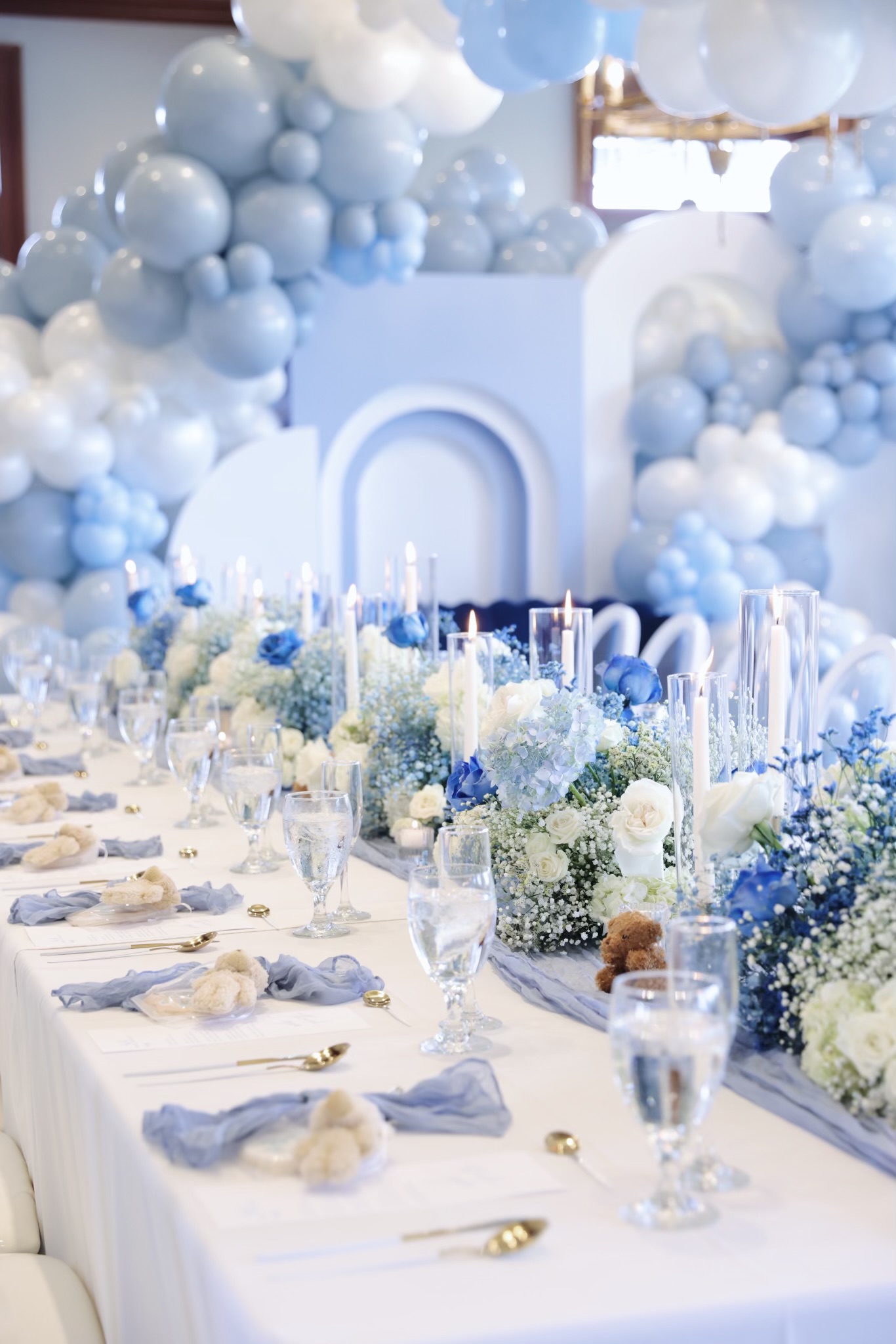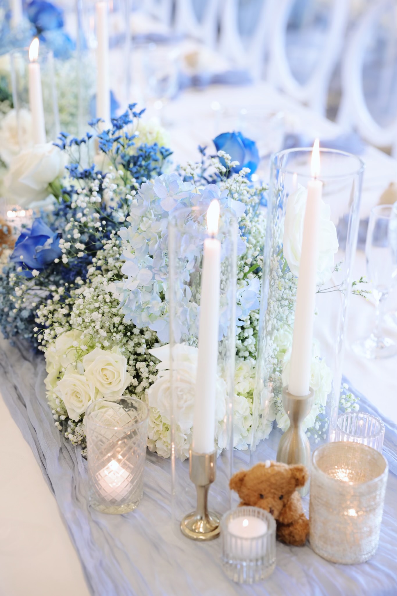“Mom-to-be didn’t want the shower to be too on theme, so we added small touches of ‘baby’ through the tiny teddy bears on each place setting, and the dusty blue color palette incorporated throughout the decorations,” Roberts says.