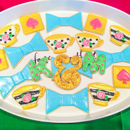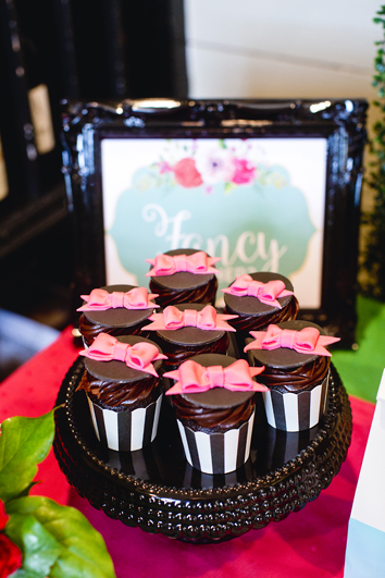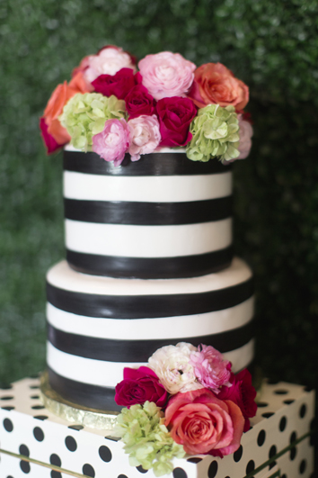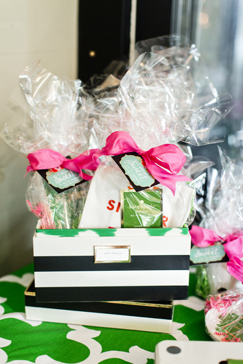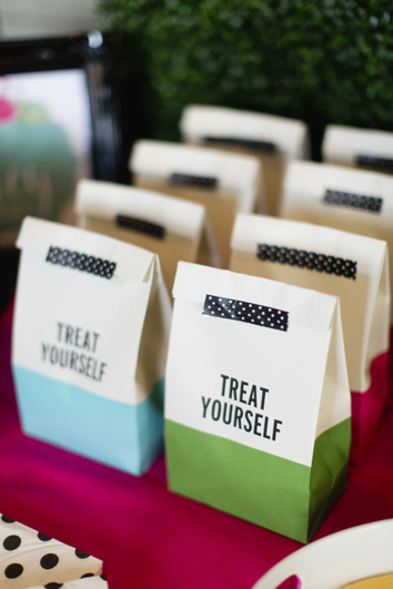“Kate Spade always pairs her black, white and gold with bright colors, which is perfect for spring and summer,” says Angela DiVincenti Babin, owner of Angela Marie Events. “We used many authentic Kate Spade items here, including the linens on the dessert table, the boxes and treat bags, the prizes, and even the tray the cookies were in.”