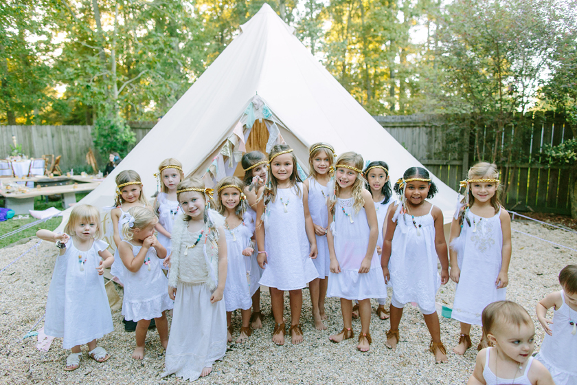 When Kelly Kriger, owner of Whatchawant Design, decided to throw a whimsical birthday party for her daughters Ella and Addy, she turned to neighbor and party planner Angela DiVincinti Babin, owner of Angela Marie Events. The duo teamed up to create an “Oh-So-Boho Powwow” with room-sized tents, comfy sofas for lounging, a big-girl beauty station and plenty of crafts.
