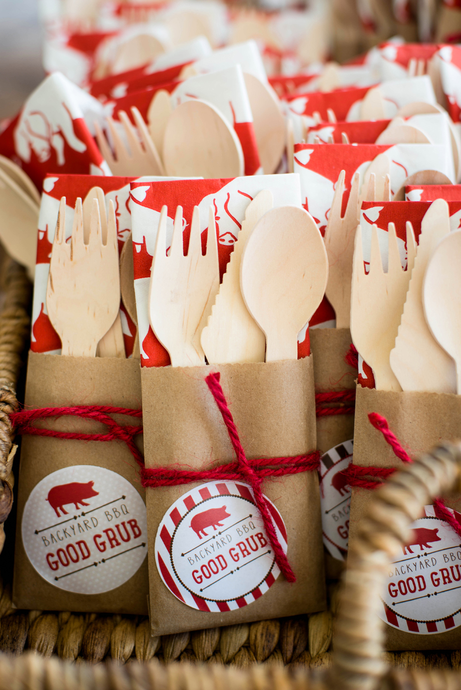 While the true taste test of burgers and ribs can be assessed by the number of napkins used, who says those napkins can’t be cute? Punch up the pig feast pizzazz with simple details—such as colorful napkins, creative signage and rough-hewn tables—to create a festive scene that makes firing up the grill a real treat.