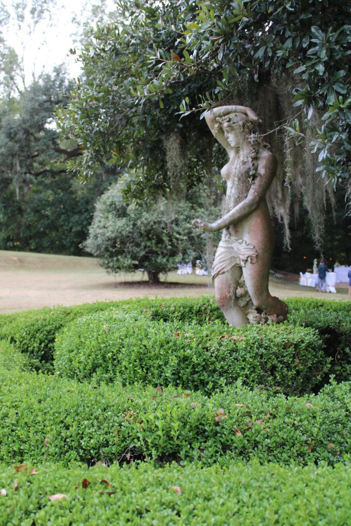 The statue seen here is one of the few from the original house. When the Kimble family first purchased the grounds, the landscape was so overgrown that they were unaware it even existed.