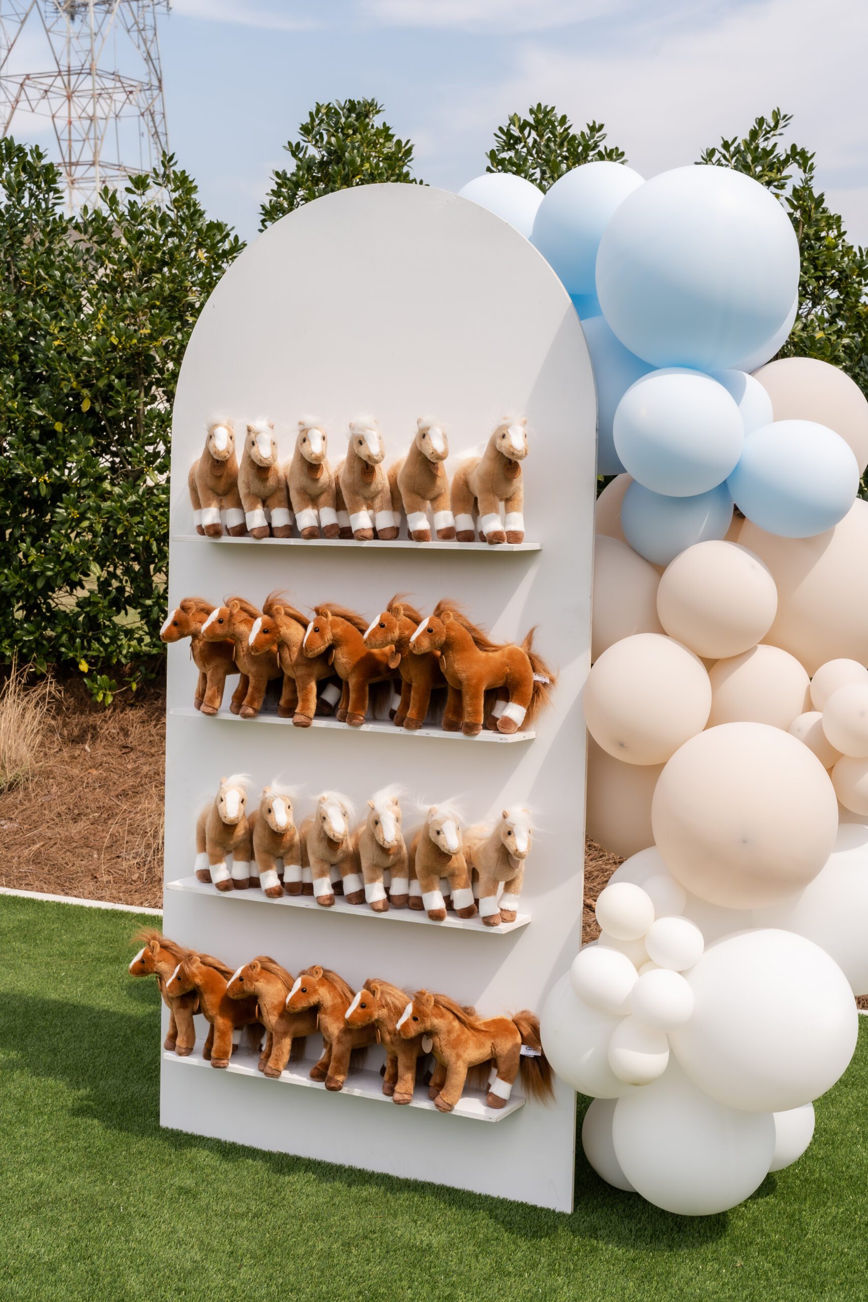 “After grabbing a stuffed horse from the favor wall, they went on to the different stations: check-up station with medical equipment and bandages, brushing station with wooden combs, jockey attire station where they could design and color their outfit, mini rose wreath making station, and finally they were awarded certificates and blue ribbons,” she explains.