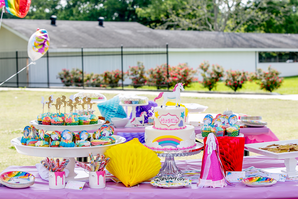 Find a font and stick to it: Extending from the invitation, Polito explains that the key to a clean and cohesive look is to use the same font from the invites in all the party elements. Adding matching banners and signs allows the theme to flow throughout the party space while creating a personalized look.