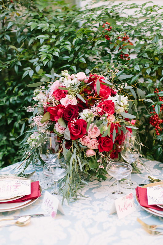 “I threw in a pretty blue tablecloth and added depth to the décor with rich maroons.”
