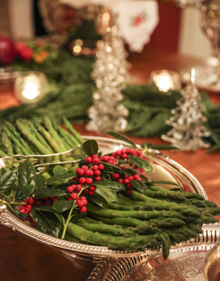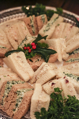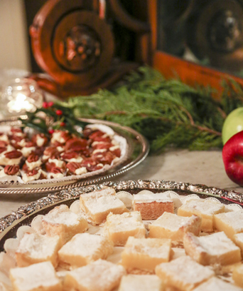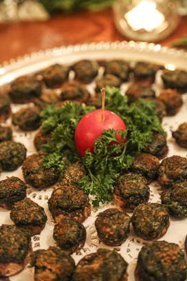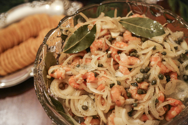 Surrounding the flowers on the table were the savory dishes that always make up La Tertulia’s holiday menu. Members prepared each recipe themselves, from stuffed mushrooms and marinated shrimp to Swedish meatballs and hot oyster dip. “Our signature dish that everyone always gobbles up as fast as they can is lump crabmeat in Green Goddess dressing,” Morgan adds. (See recipes at the end of this article.)
