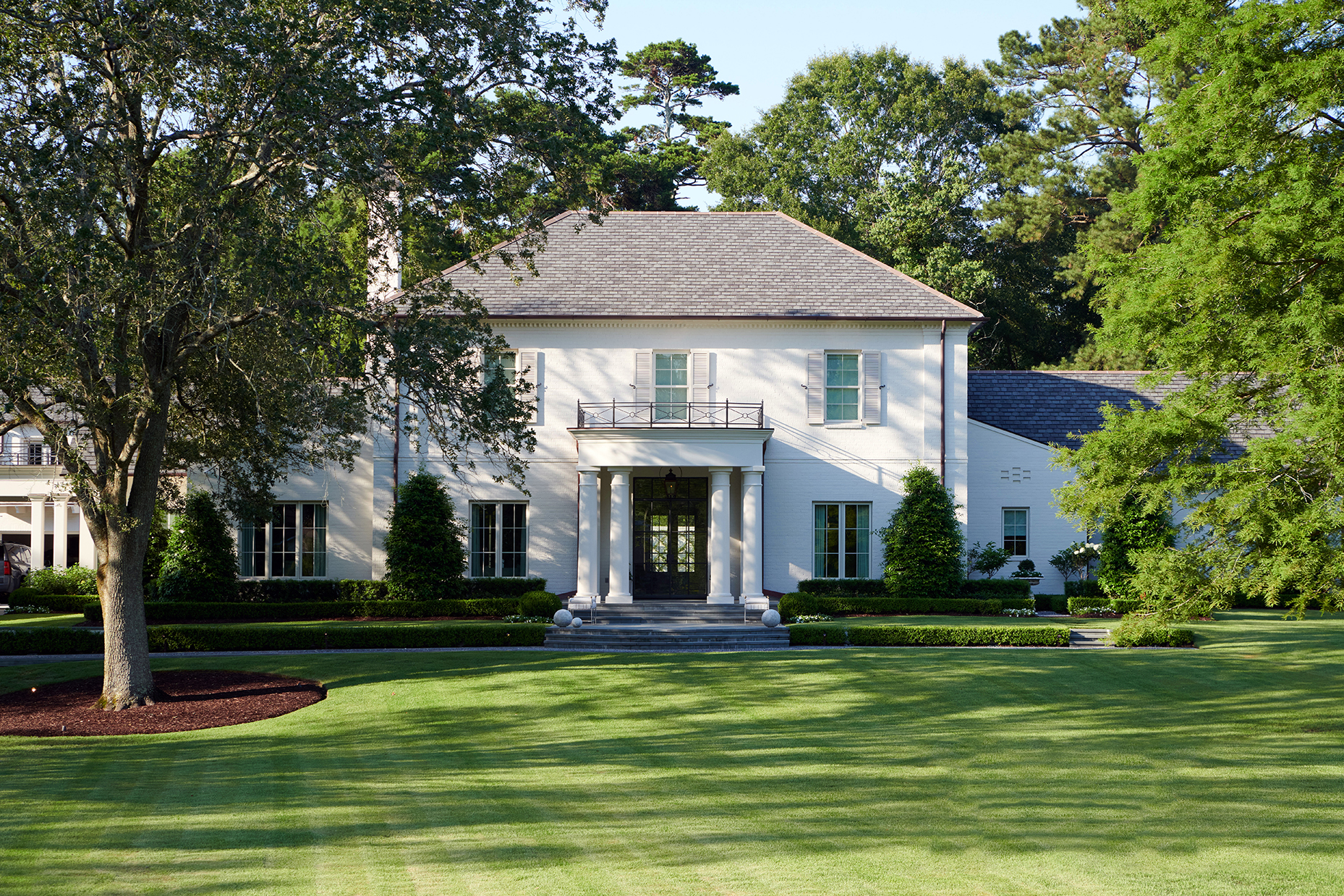“Now this,” says Colleen Waguespack, of Colleen Waguespack Interiors, looking around. “This lawn and this light, we couldn’t get in New Orleans.” Homeowner Alayna Smith agrees, and the duo discusses the limited lot space which impedes natural light reaching into the yards and homes of their hometown.