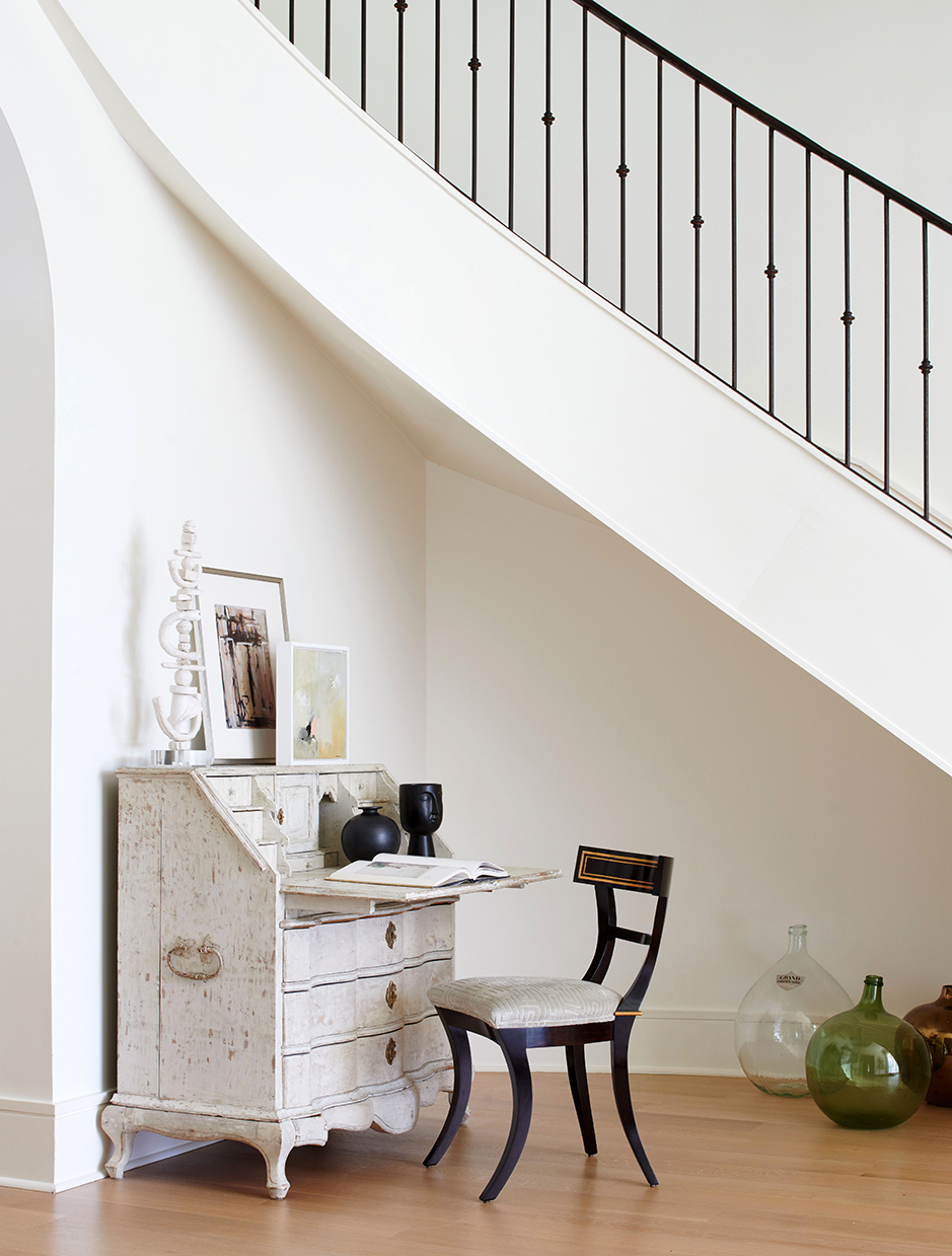 The European-inspired exterior of the home opens to gracious interiors infused with light and views from every angle. Here, every piece from Alayna and Jason’s previous house found a home because they were carefully selected with the future in mind. And with children now older and more self-sufficient, Alayna and Colleen were able to travel to Dallas, Houston and New York on buying trips to supplement the provisions procured from their beloved New Orleans. The result is exactly what they envisioned: architecture that supports a thoughtful collection of antique and modern furniture, as well as antique and modern art.
