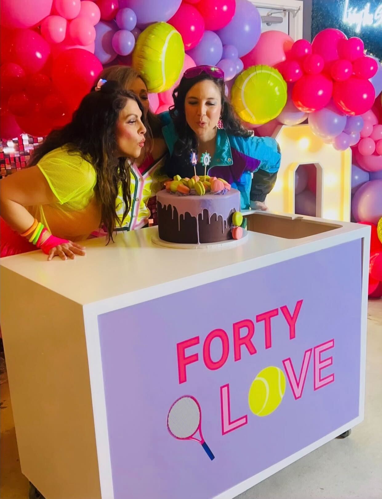 1985 meets tennis fun at this trio’s 40th birthday celebration
