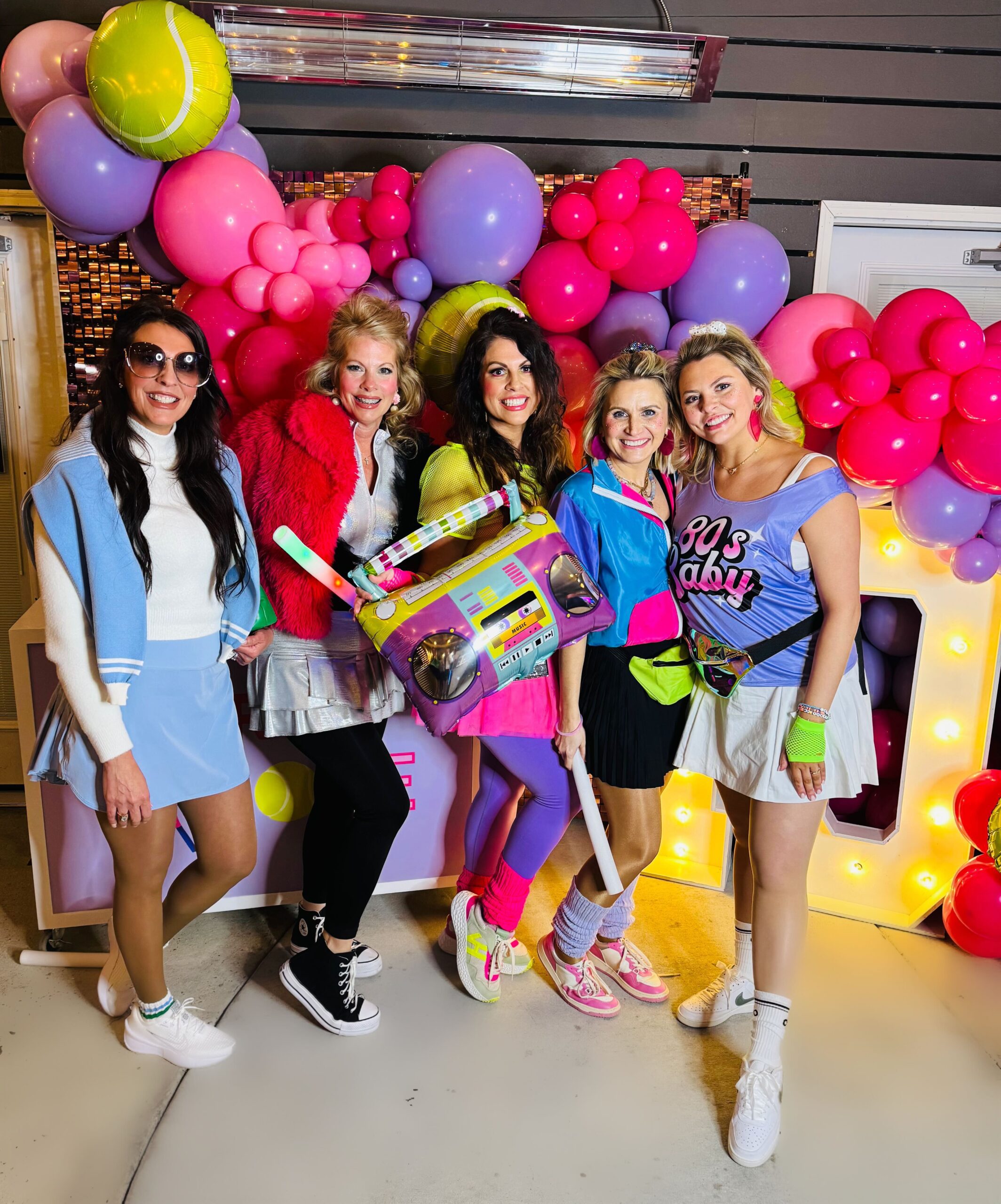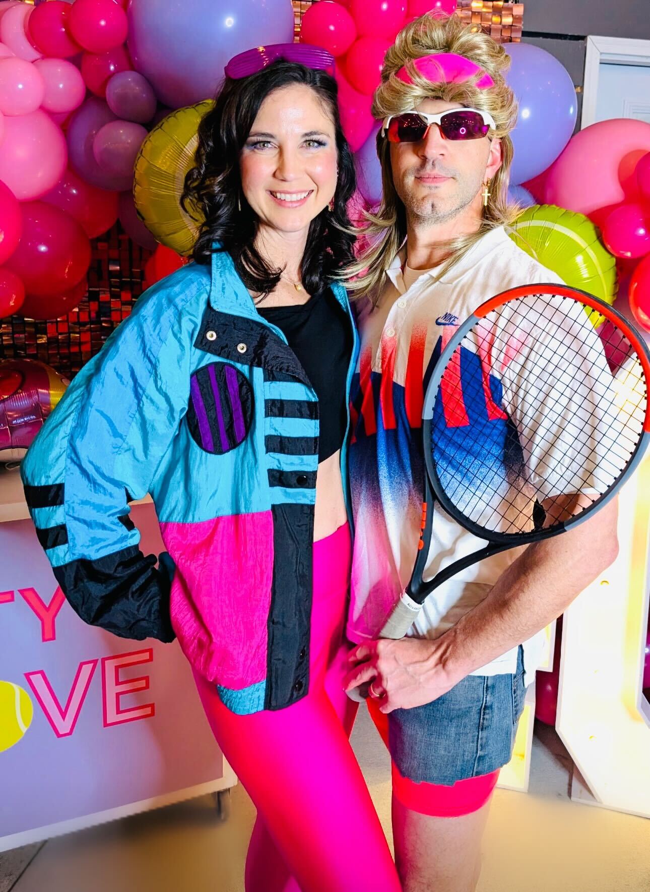For this tennis-loving trio’s 40th birthday celebration, they threw it back to the 1980s, replacing tennis whites with tennis brights.