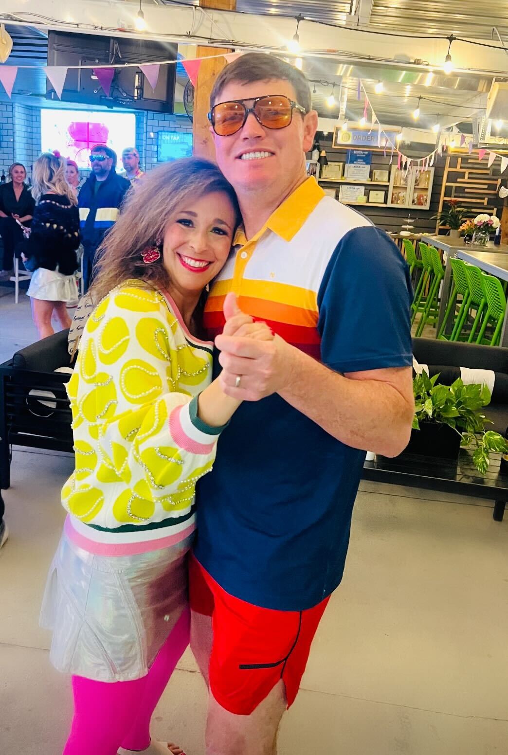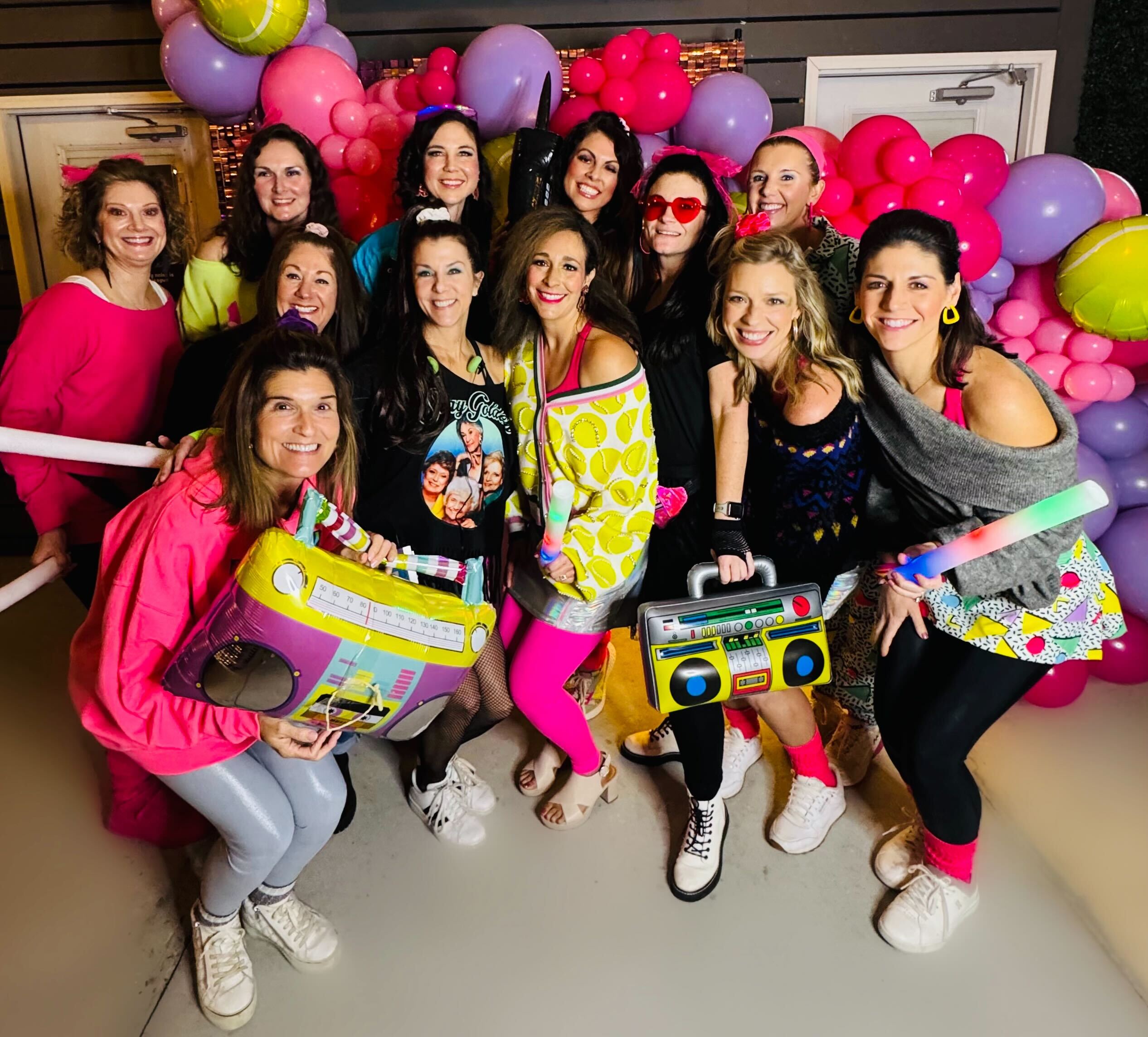 Guests reveled in the blast to the past. Leg warmers or not, everyone had fun with the ’80s and tennis-themed props for the photo backdrop and dancing to the best hits from the ’80s, ’90s and 2000s played by DJ Johnathan. “We really enjoyed the dance floor,” Chapman says. Their friendship and loving community are what made the night so special, she adds.