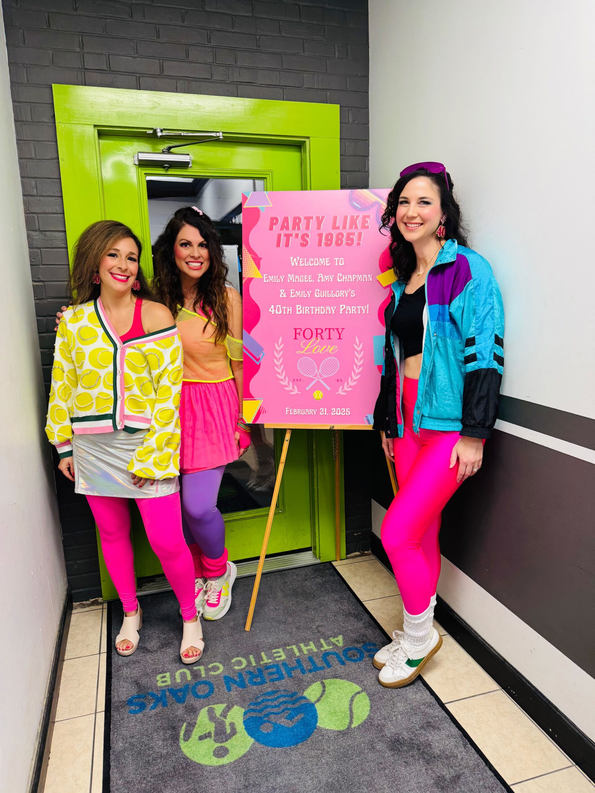 Event designer Amy Chapman was itching to throw a “Forty Love”-themed party. The opportunity presented itself in the best way when she and her friends, Emily Magee and Emily Guillory, all turned 40 this past February.