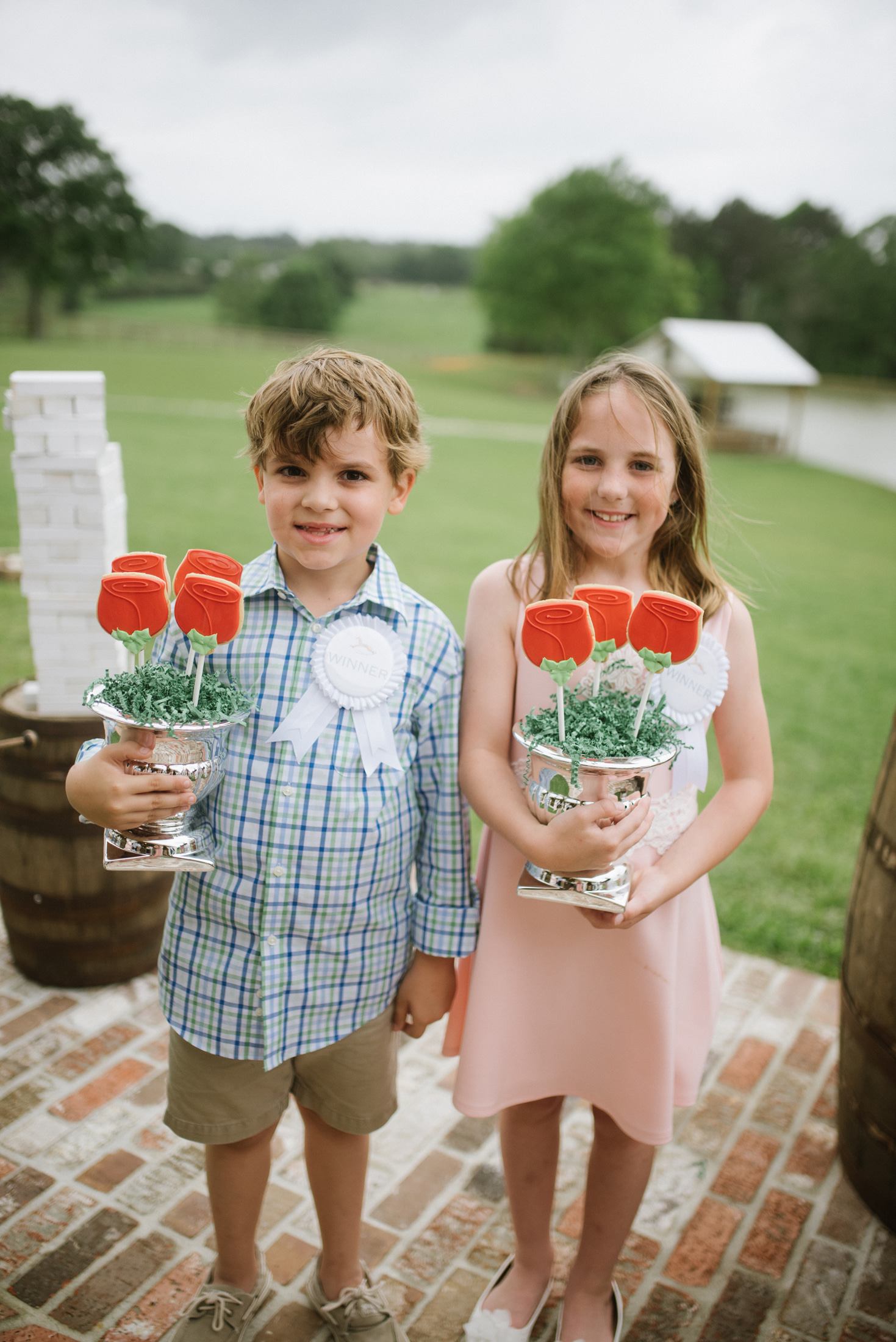 The winners of the field games at Deckert DiVincenti’s first birthday received trophies filled with rose-shaped cokies by Silly Gilly Desserts. Party by Angela Marie Events. Photo by Lauren Carroll.