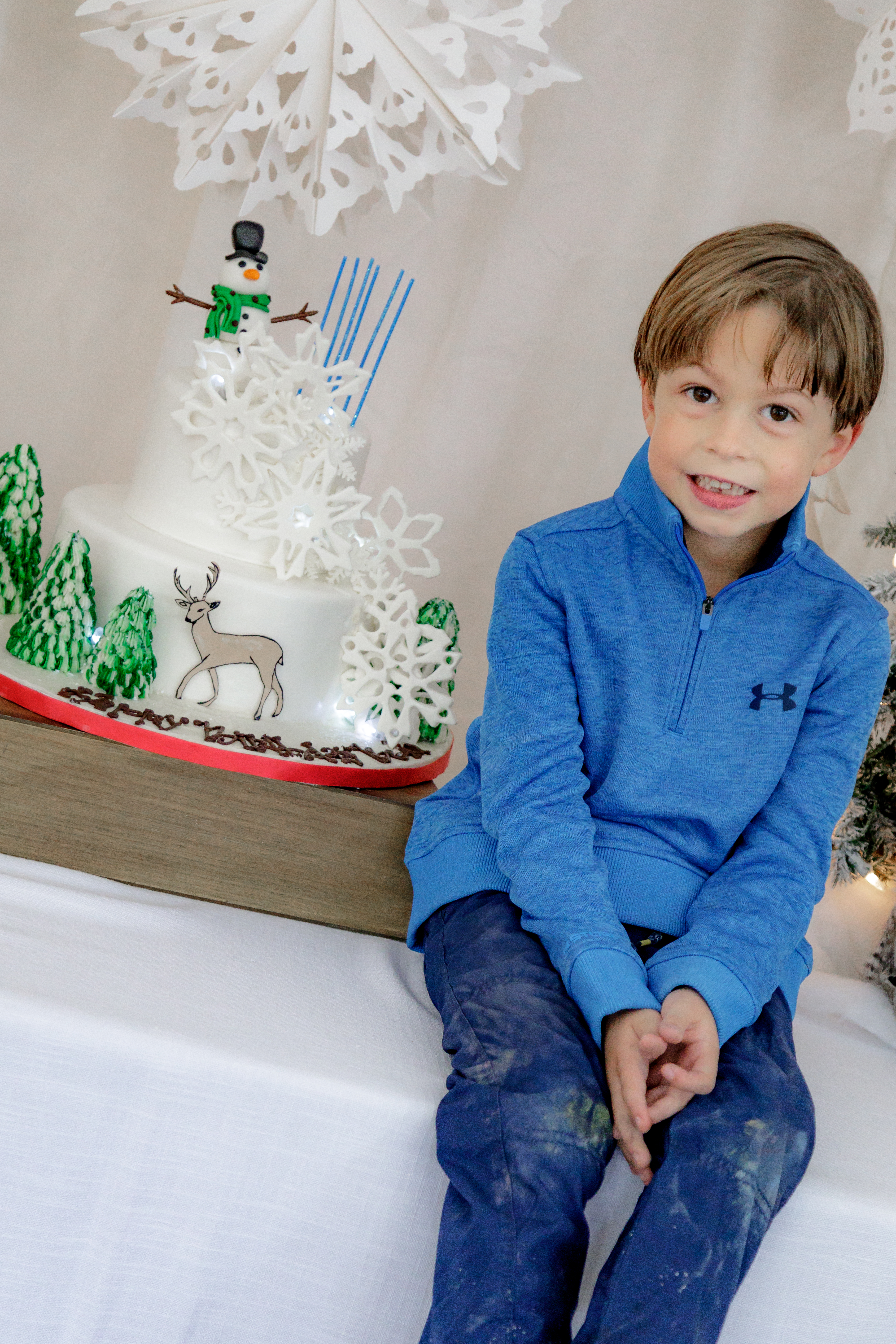 Seven-year-old Beau Henderson helped design his two-layer, winter-themed birthday cake with the help of local bakery the Cake Goddess. Party by Angela Marie Events. Photo by Rayne Film Studio.