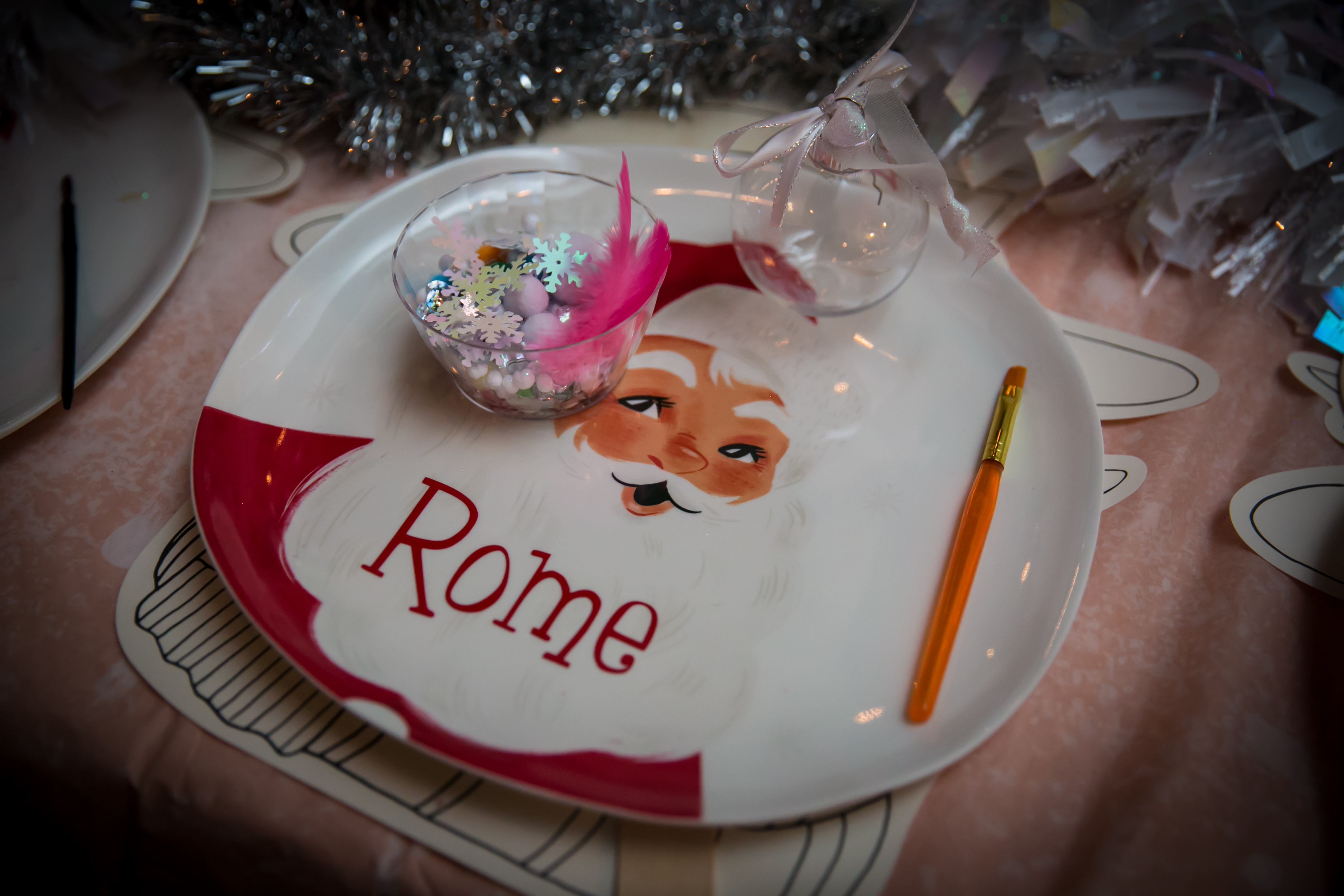 Ornament-making stations with personalized Santa plates from The Keeping Room provided a fun activity for the kids at Lexie Polito’s annual Christmas party for moms and their children. Party by Lexie Polito. Photo by Jenn Ocken.