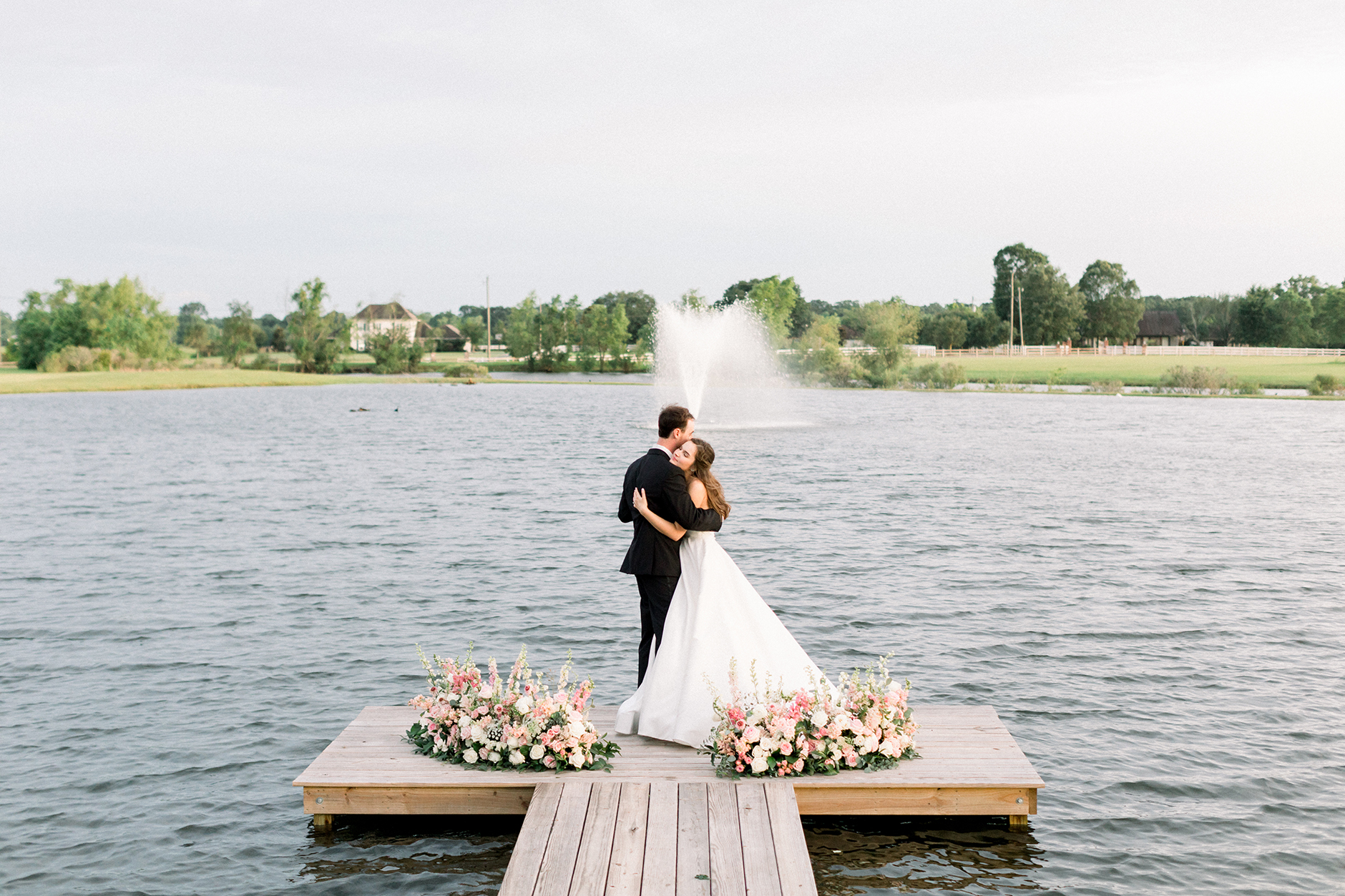 Newlyweds Mackenzie and Ryan May, whose story was featured in our July issue, shared their socially distanced first dance on a floral-laden dock. Photo by Carolynn Seibert.