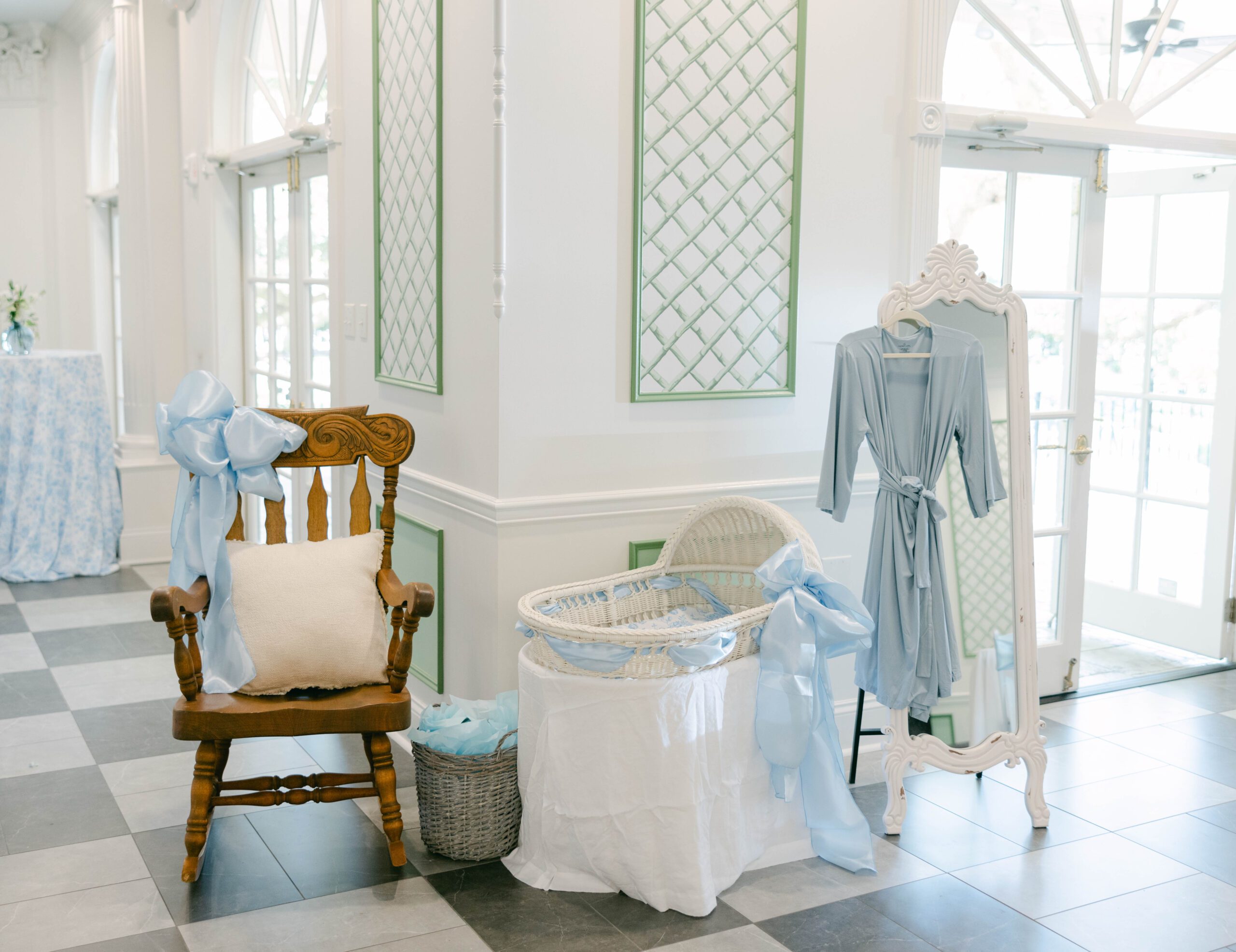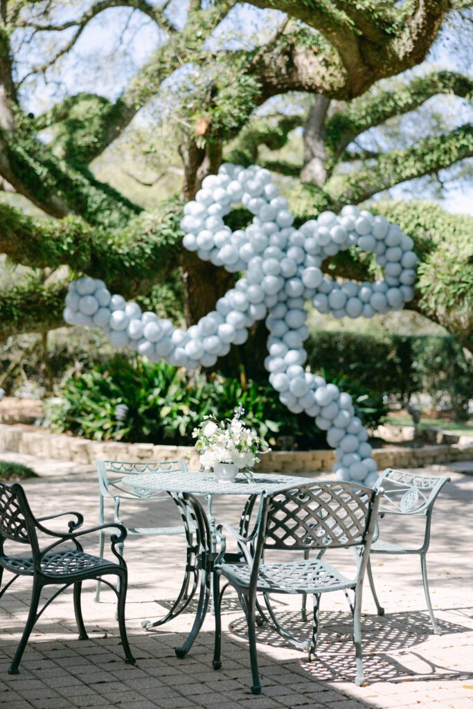 Badon has a deep love for a classic, traditional aesthetic, which Quick brought to this event through soft blues, custom watercolored bunny details and bows. “The focal point of the shower was the big bow made of blue balloons on the tree outside,” Quick notes. Sentimental details made the party even sweeter. Most notably, Badon opened presents from the rocking chair that belonged to her late grandmother, who passed away just a few months before the party.