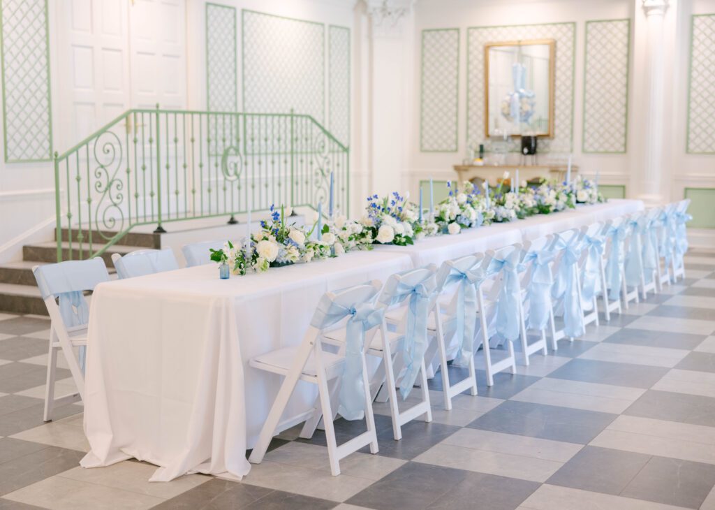 Dainty blues, bows and bunnies made this baby shower a dreamy celebration