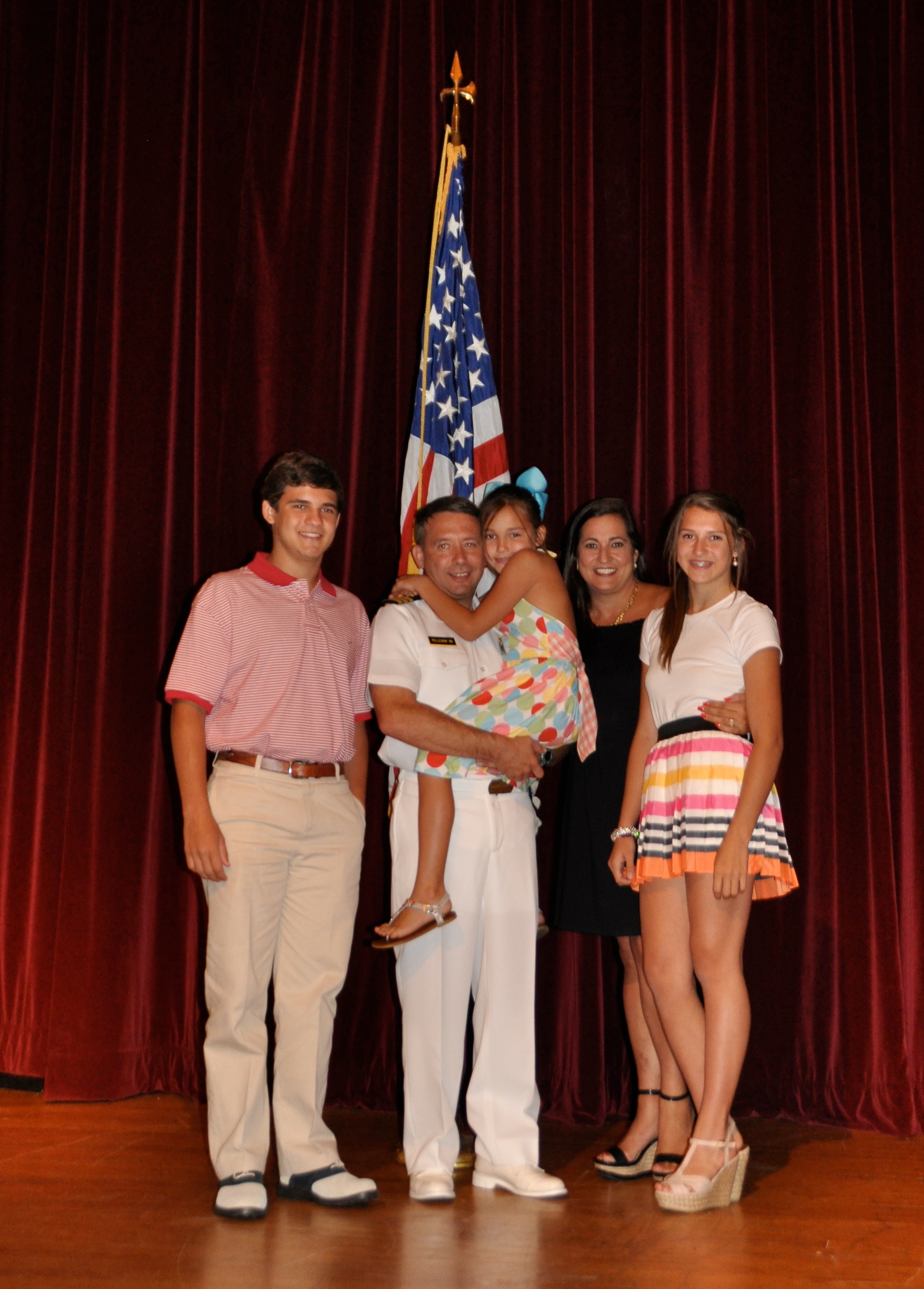Best part of our trip: Bryan’s retirement ceremony. Bryan was the Captain of the Crew team at USNA and several of his classmates presented him with a signed oar taken directly from the Boathouse at the Academy. We were fortunate to have many of Bryan’s classmates and our families join us in Annapolis. On the morning he retired, Bryan and his friends went running and made certain to stop by Willie McCool’s memorial at USNA and pay their respects to a great American Hero. Willie was a company mate of Bryans who lost his life on the Space Shuttle Columbia. The Ceremony was unlike anything I have ever witnessed. It was filled with the same patriotism my husband brings to our lives every day, appreciation for his service and for ours as a Navy Family. We were all “piped ashore” with happy tears and a readiness to party.