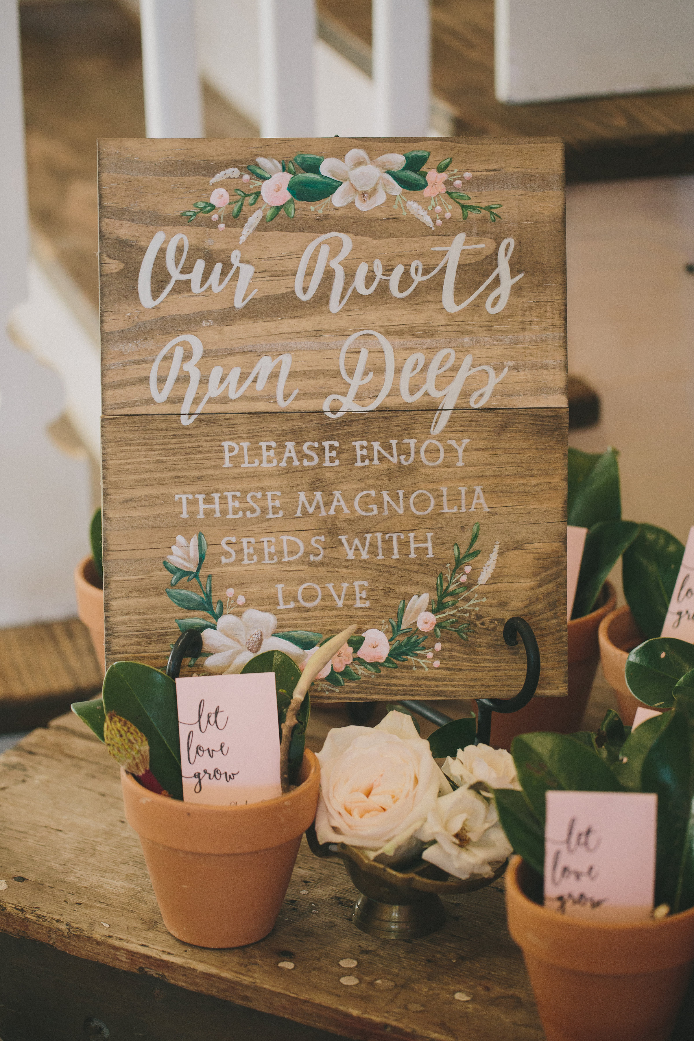 Handpainted signs helped complete the rustic yet refined look at the Richardsons’ White Magnolia wedding. Photo by Ashleigh Jayne Photography.