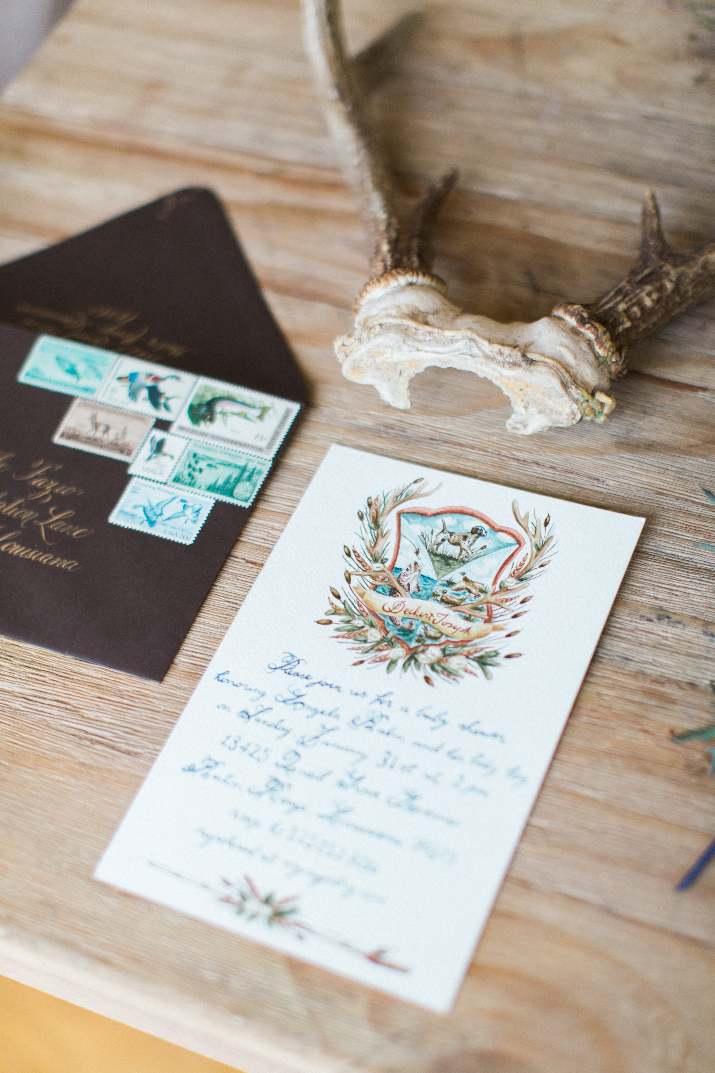 These invitations were created by Rachael Roxanne for a hunting and fishing-themed baby shower planned by Angela DiVincenti Babin of Angela Marie Events. Photo by Carolynn Seibert.