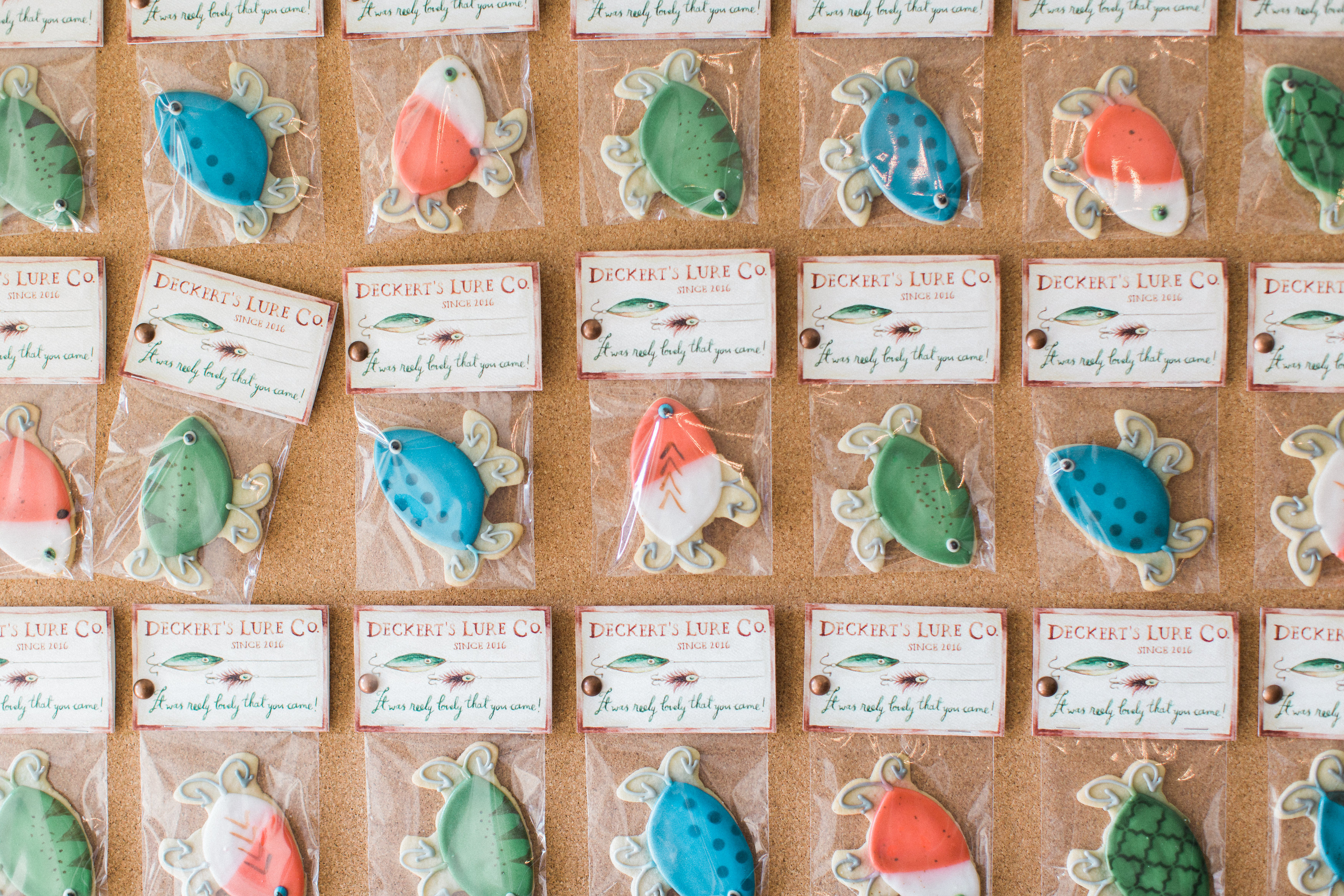 For an outdoorsy baby shower, Angela DiVincenti Babin commissioned these cookie versions of bait from Rachel Roxanne and Silly Gilly Desserts. Photo by Carolynn Seibert.