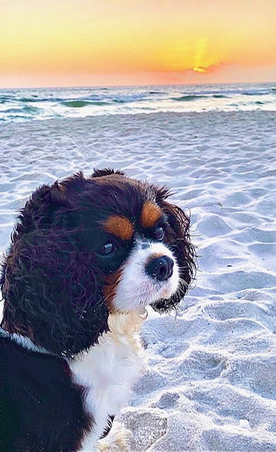“Chloe is the perfect sidekick! She is 6 years old and lives for the summer! When she’s not swimming or floating in the pool, she’s dreaming of the dog-friendly beaches of the Gulf Coast. She truly is the perfect little companion, and we love her so much!
