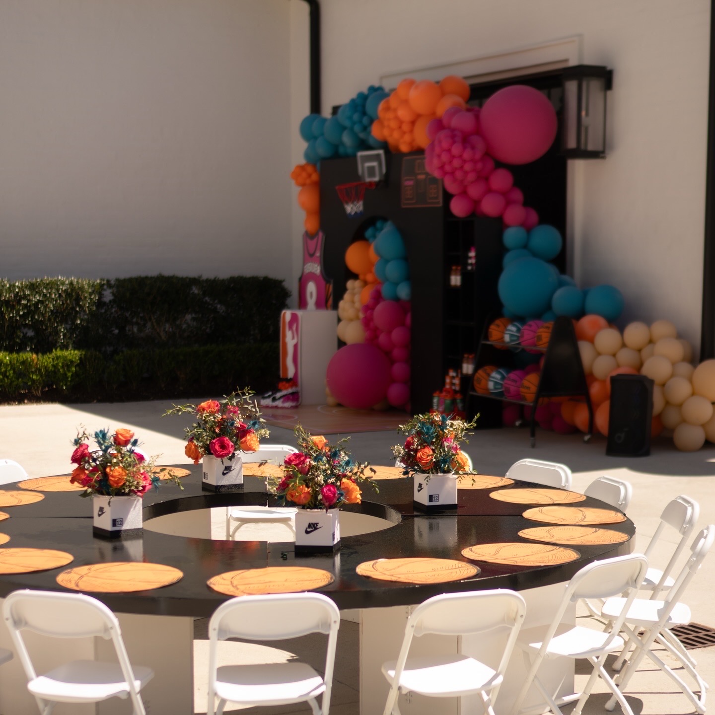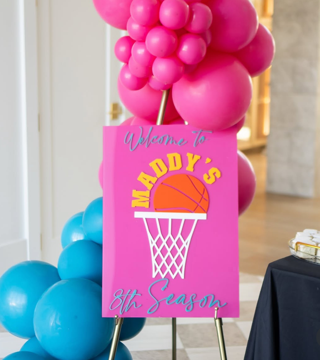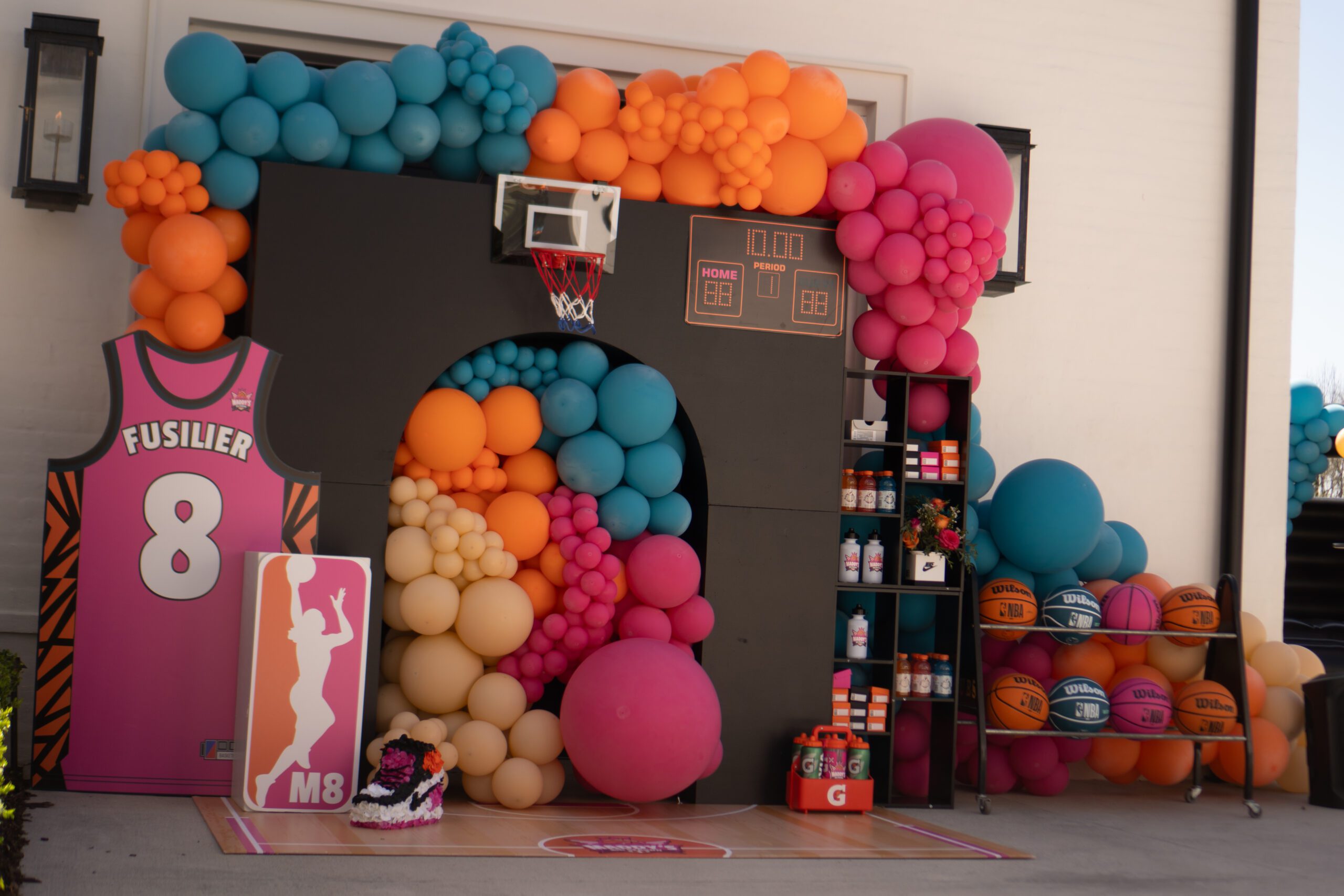 “Brittney and JD’s daughter is such a girly girl, and she’s fallen in love with basketball,” says Harden. “We talked over ideas for the party and landed on a basketball bash. Once I had the theme, I was given full creative control.”