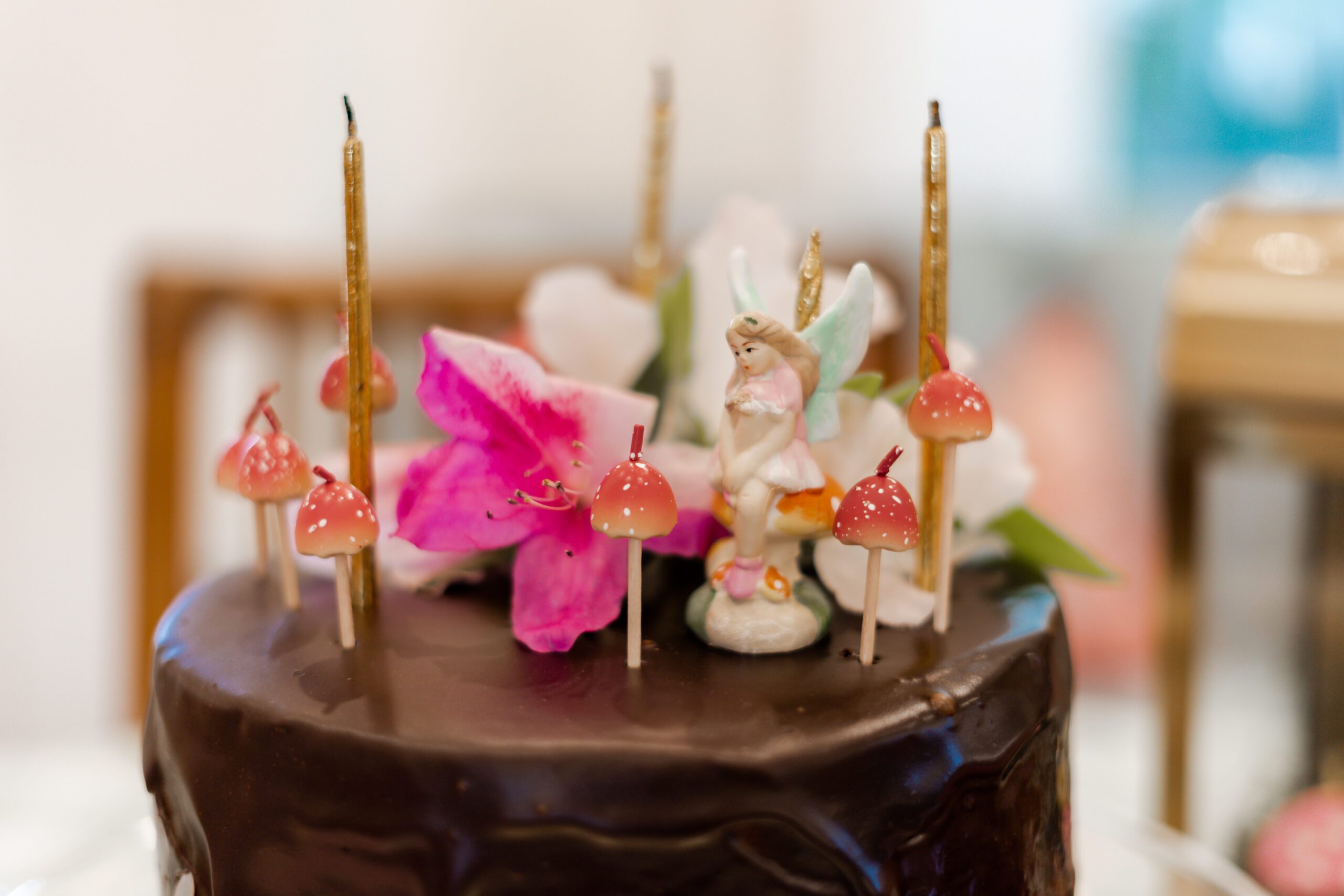 “I love that everyone chips in a little something and it becomes so magical,” she says. “From food made by family, photos taken by Katherine’s talented Aunt KK, the cutest fairy house decorated with help from my sweet littles, to the cutest mushroom bud vases borrowed from a friend, each detail came together because we all did!”